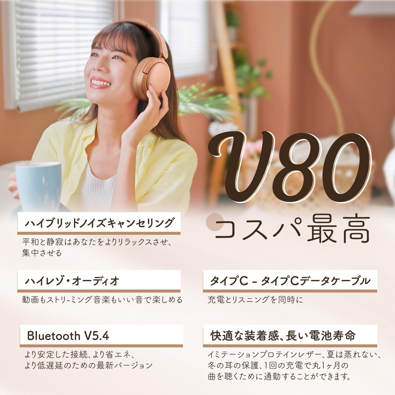 快適で耐久性のあるデザイン: ANCオフで最大45時間の再生時間(ANCオンで26時間)、15分の充電で8時間の急速充電が可能。1日1時間の通勤なら、フル充電で1.5ヶ月連続使用可能。軽量、折りたたみ式収納、柔らかいイヤークッション、イミテーションプロテインレザー、蒸れずに快適な装着感、冬用ウェアは冷たい風から耳を守ることができます。美しい配色で、あなたのファッションテイストを際立たせます。V80は基本的にワイヤレスヘッドホンとして使用され、対応コーデックはSBC/AACですが、タイプCケーブル接続により、24ビット96kHz対応のDACを内蔵し、有線ノイズキャンセリングヘッドホンとして使用することもできます。