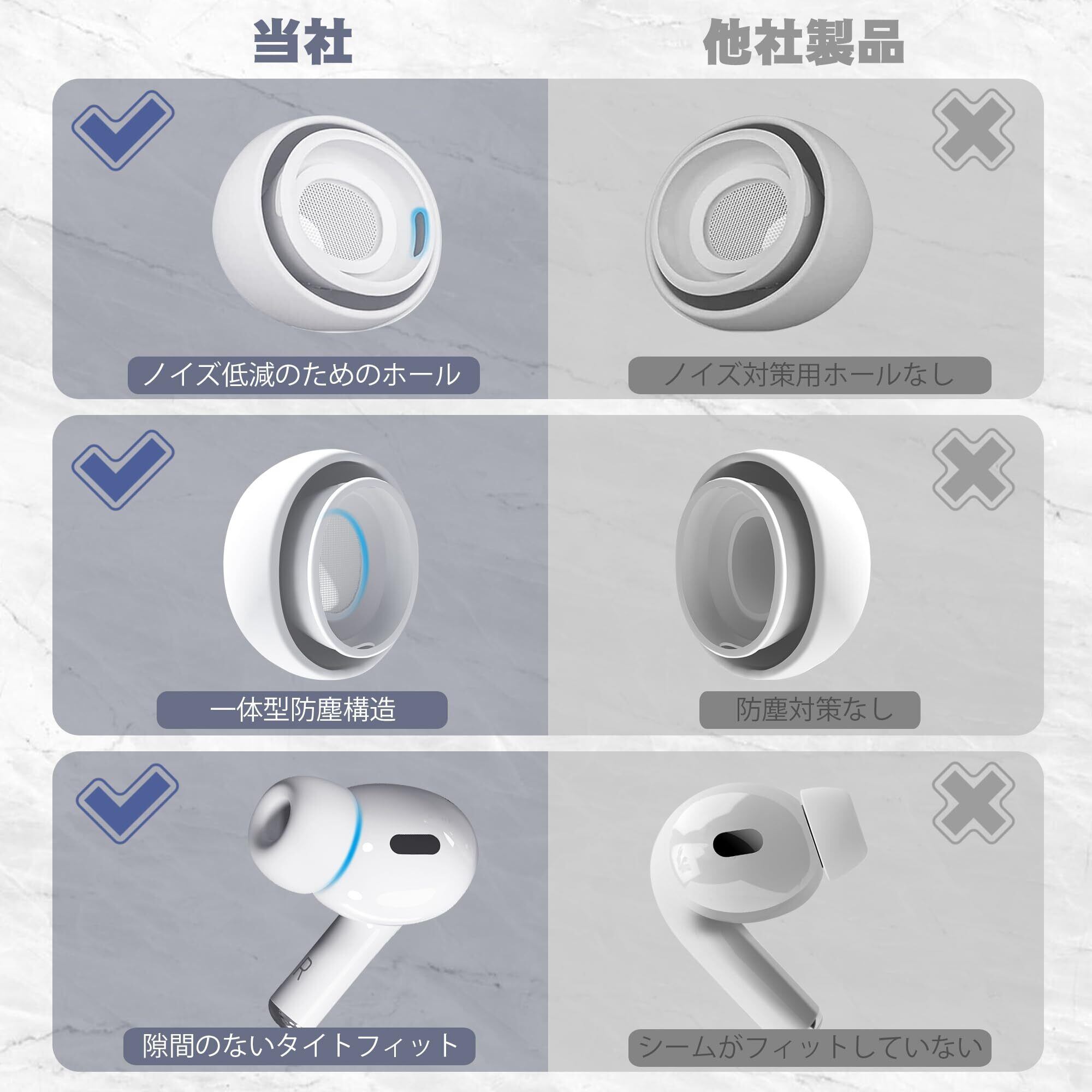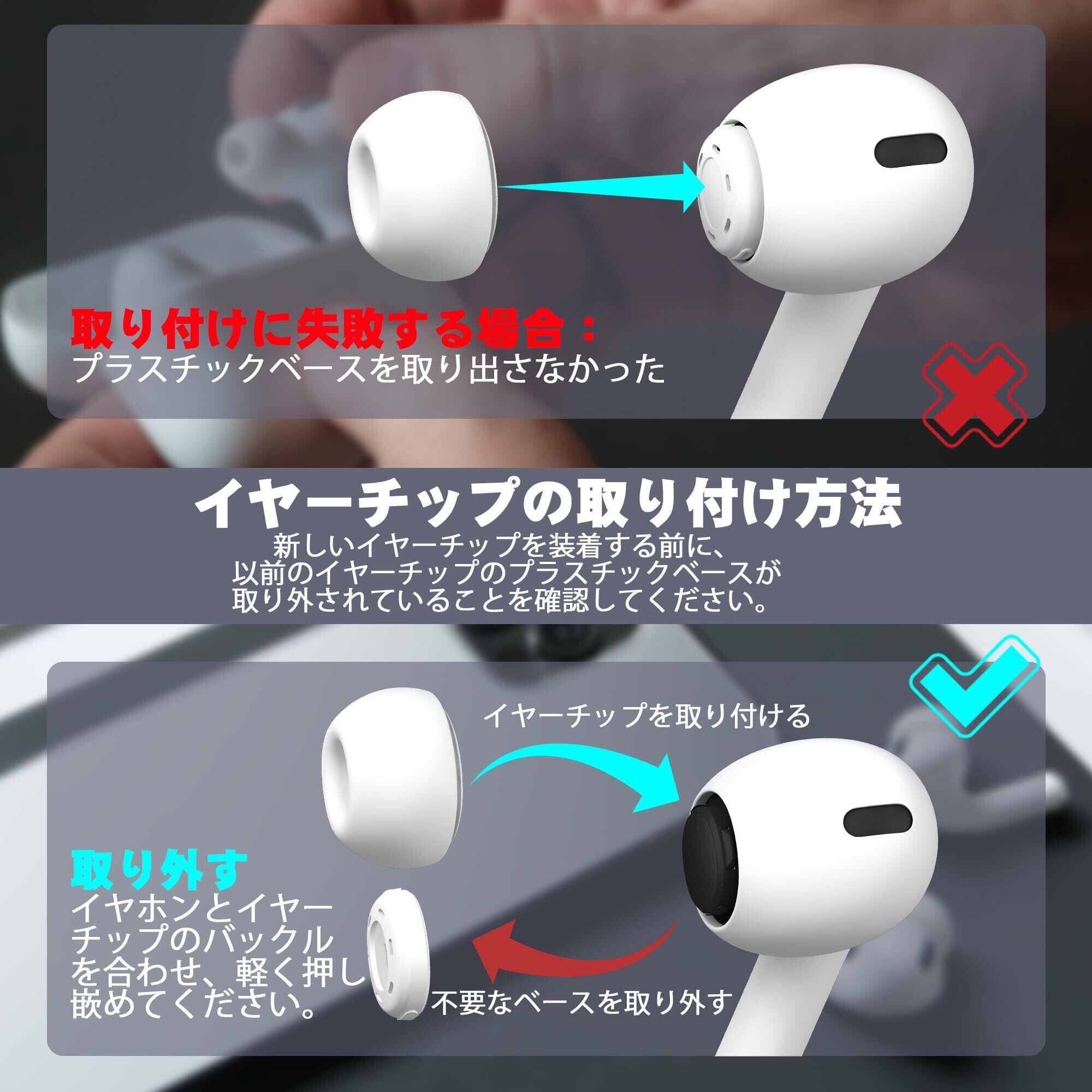 ■【使いやすい交換用イヤーチップ!】わかりやすい日本語説明書が付属しており、初めての方でも簡単に取り替えができます。手軽にお手持ちのAirPods Proをカスタマイズして、いつでも高音質な音楽を楽しめます。