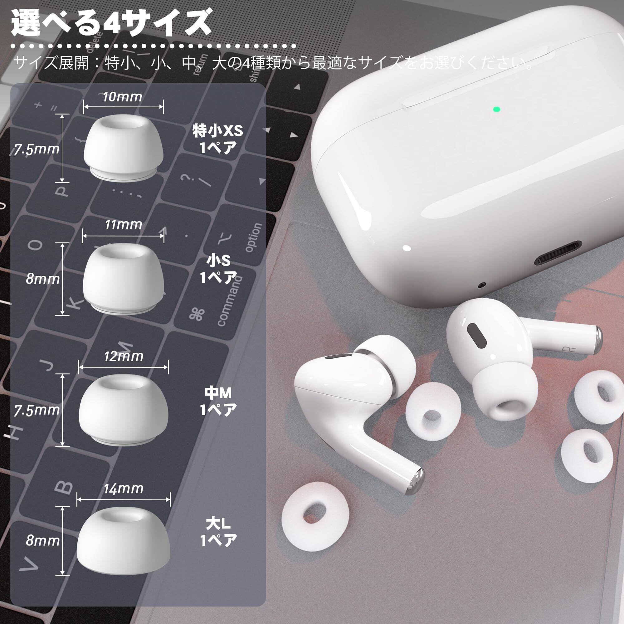 【特別なデザイン】Air Pods Pro/AirPods Pro 2にぴったりマッチ。 4つのサイズ(XS/S/M/L)をご用意しております。充電ケースにイヤホンを挿入しても、端子と接する感知や充電には影響しません。