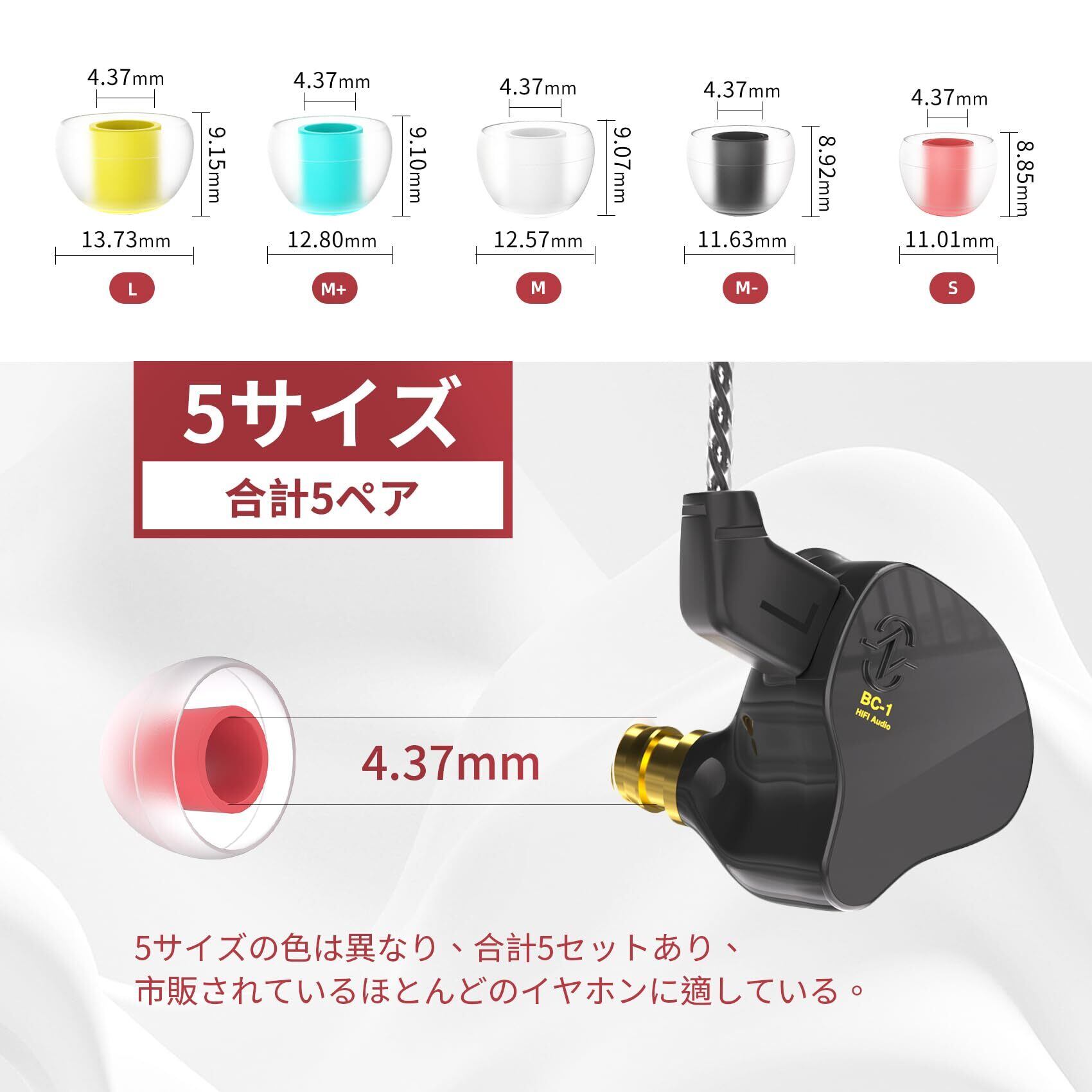 【イヤークッションの種類】KBEAR 07 イヤホン 耳ゴムは、S、M-、M、M+、L色違い計5種類サイズのイヤーチップあり、イヤホンに好きなサイズに合わせることできます。適切なサイズを選んで、快適なリスニング体験をお楽しみください 、注意:このイヤホンパッドはAirPods Proには適していません。