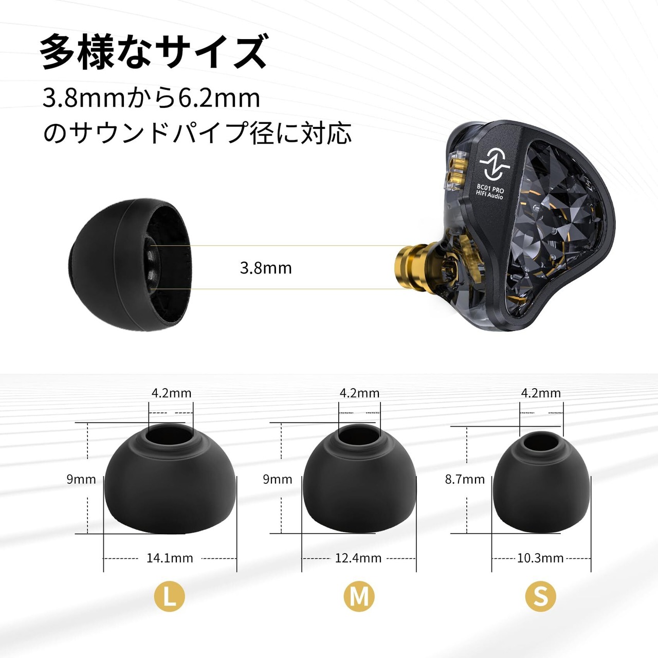 ■【驚きのフィット感!】YINYOOのシリコンイヤーピースは、柔らかく高品質な素材を使用しており、耳にしっかりとフィットします。サイズはS、M、L各4ペアずつの合計12ペアがセットになっており、あらゆる耳の形にマッチする設計です。長時間の使用でも快適さを保ちながら、音楽や通話を楽しむことができます。