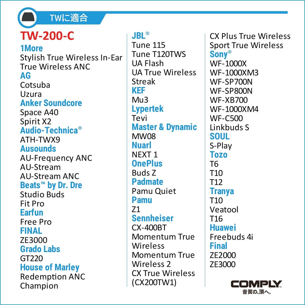 「Comply TrueGrip Pro TW-200-Cイヤーピースで、あなたの音楽体験をさらに向上させましょう。皆様のご購入を心よりお待ちしております!」