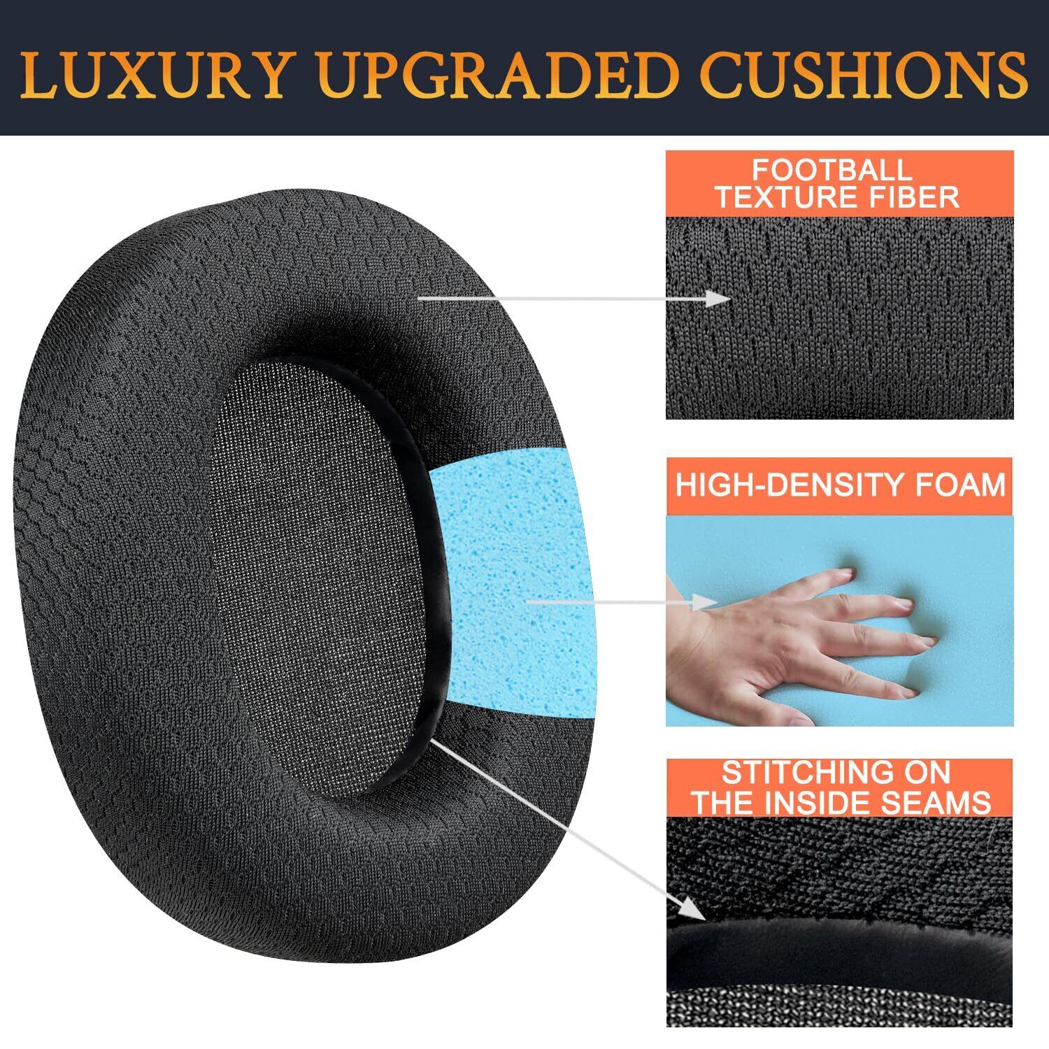 【丈夫で耐久性がよい】ヘッドホンパッドはメッシュファブリックで作られて、汗を防止できますし、滑り止めにも役に立ちますし、耐久性にも優れています。高密度フォームを採用して耳触りがよく柔らかくてフィット感もよくて快適に使用できます。長時間使用時に耳への負担も軽減できます。快適さと見映えを両立させます。