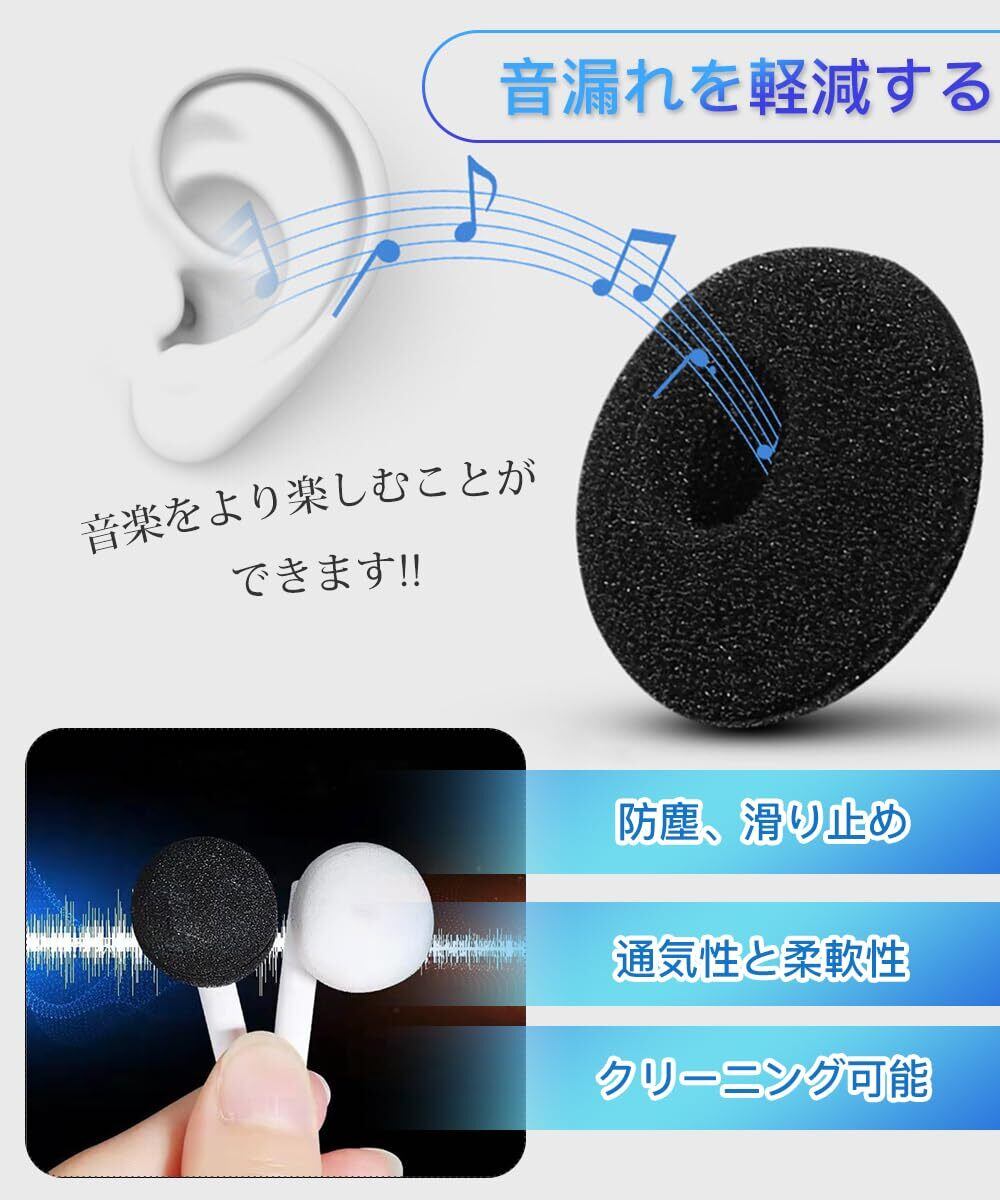 【多機能】1、滑り止めの効果があり、イヤホンが使用中に滑りやすい現象を防ぐことができる。2、柔らかいスポンジであるため、使用時にイヤホンを装着することによる不快感を軽減することができる。3、イヤホンの使用時の音漏れを軽減し、音楽をより楽しむことができます。4、防塵作用があり、イヤホンをよりよく保護することができる。