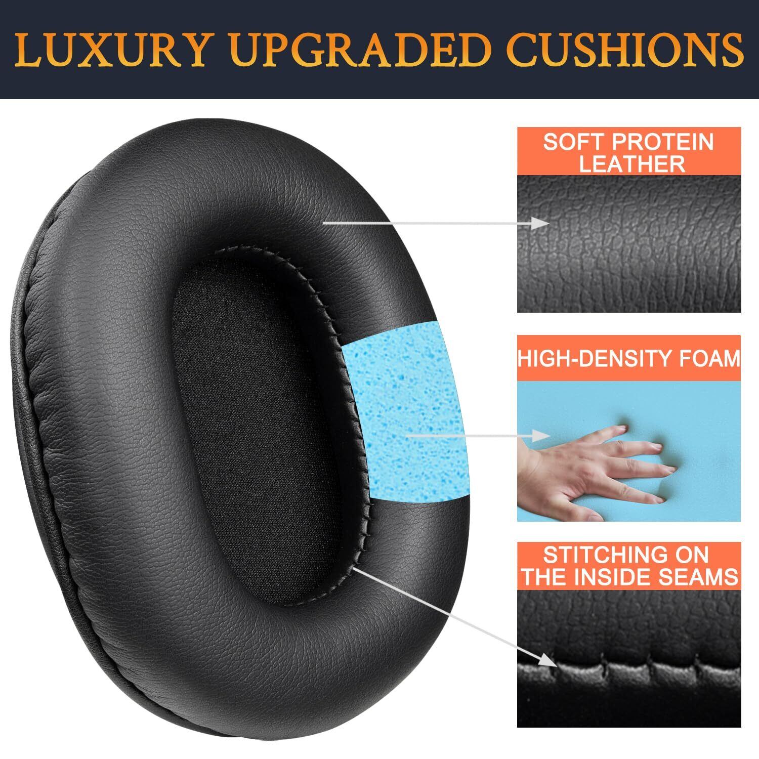SOULWIT イヤーパッド イヤークッション for Audio Technica ATH M50X M50XBT M50xSTS M50RD M40X M30X M20X MSR7 SX1 モニターヘッドホン 高密度フォーム ヘッドパッド プロテインレザー イヤーカップ (ブラック)