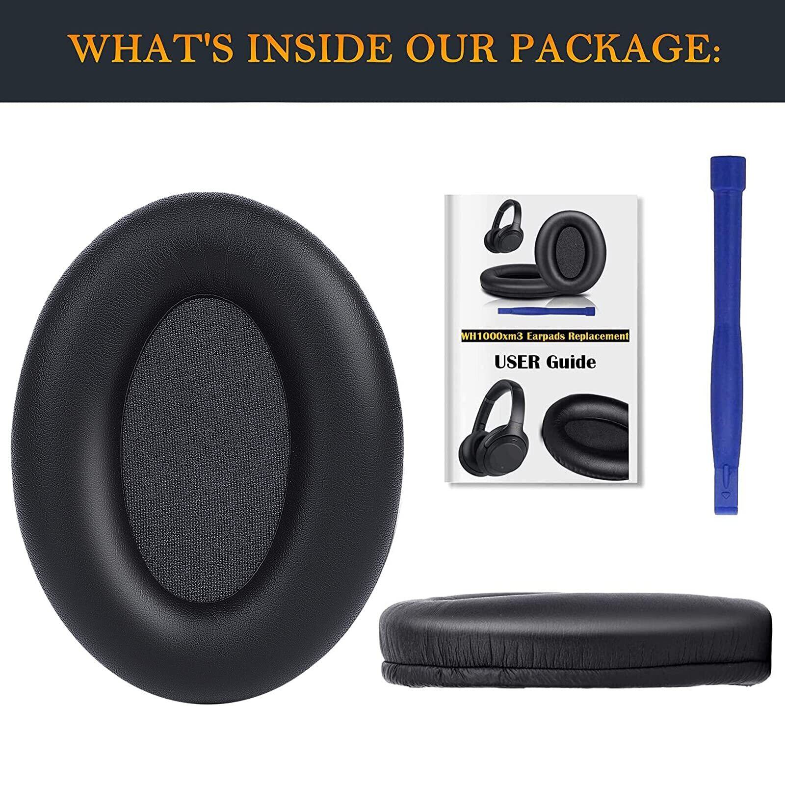 SOULWIT イヤーパッド イヤークッション 交換用 Sony WH-1000XM3 (WH1000XM3)オーバーイヤーヘッドフォン に対応 ヘッドパッド 柔らかいプロテインレザー ノイズアイソレーションメモリーフォーム イヤーカップ 厚みを追加 耳当て (黒)