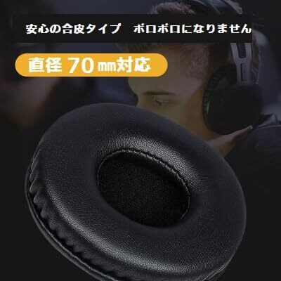 【限定】ヘッドセット ヘッドホン ヘッドセット交換用イヤーパッド 合皮生地 (合皮 ブラック 直径70mm対応, 2個)