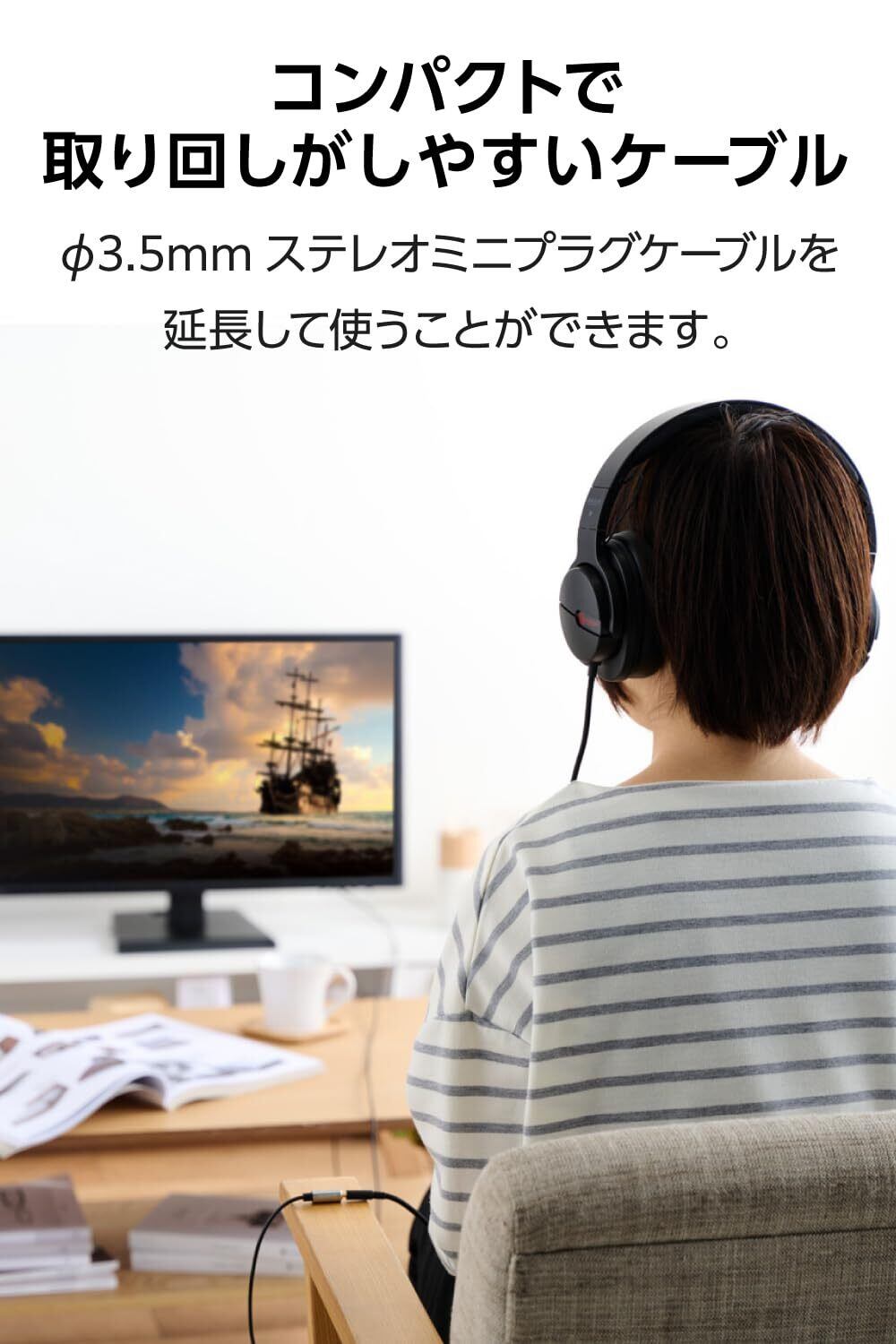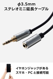 ■φ3.5mmステレオミニプラグケーブルを延長できる、コンパクトで取り回しがしやすいφ3.5mmステレオミニ延長ケーブルです。