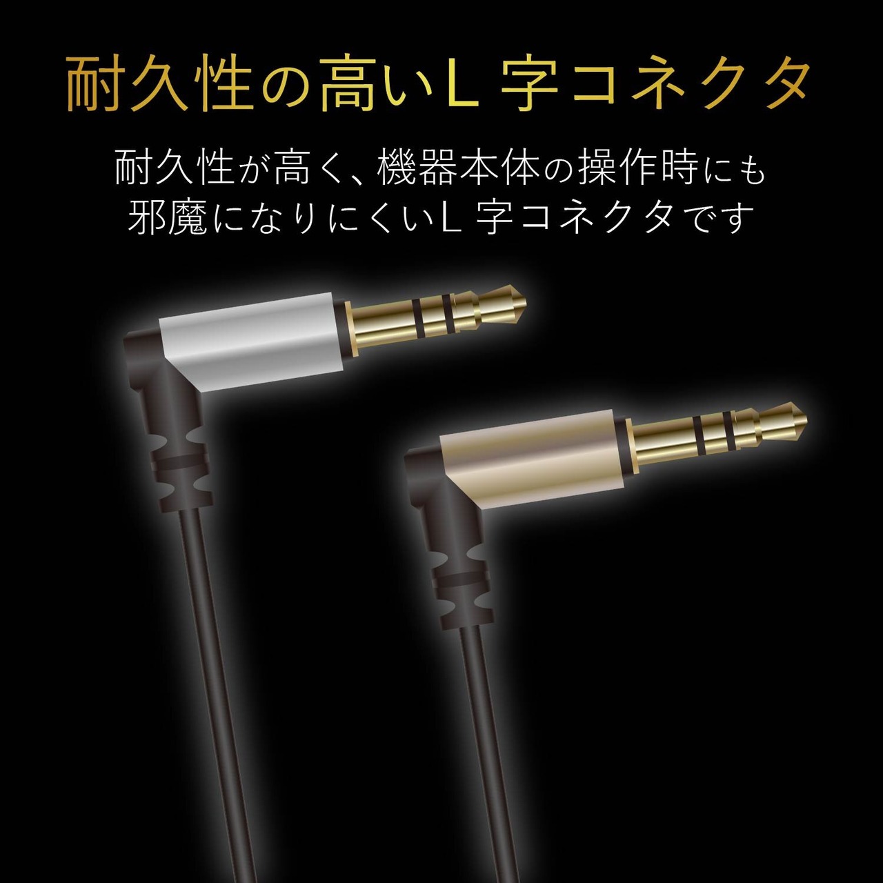 ■ 耐久性が高く、スマートフォン・オーディオプレーヤー本体を操作する際に邪魔になりにくいL字コネクタを採用しています。
