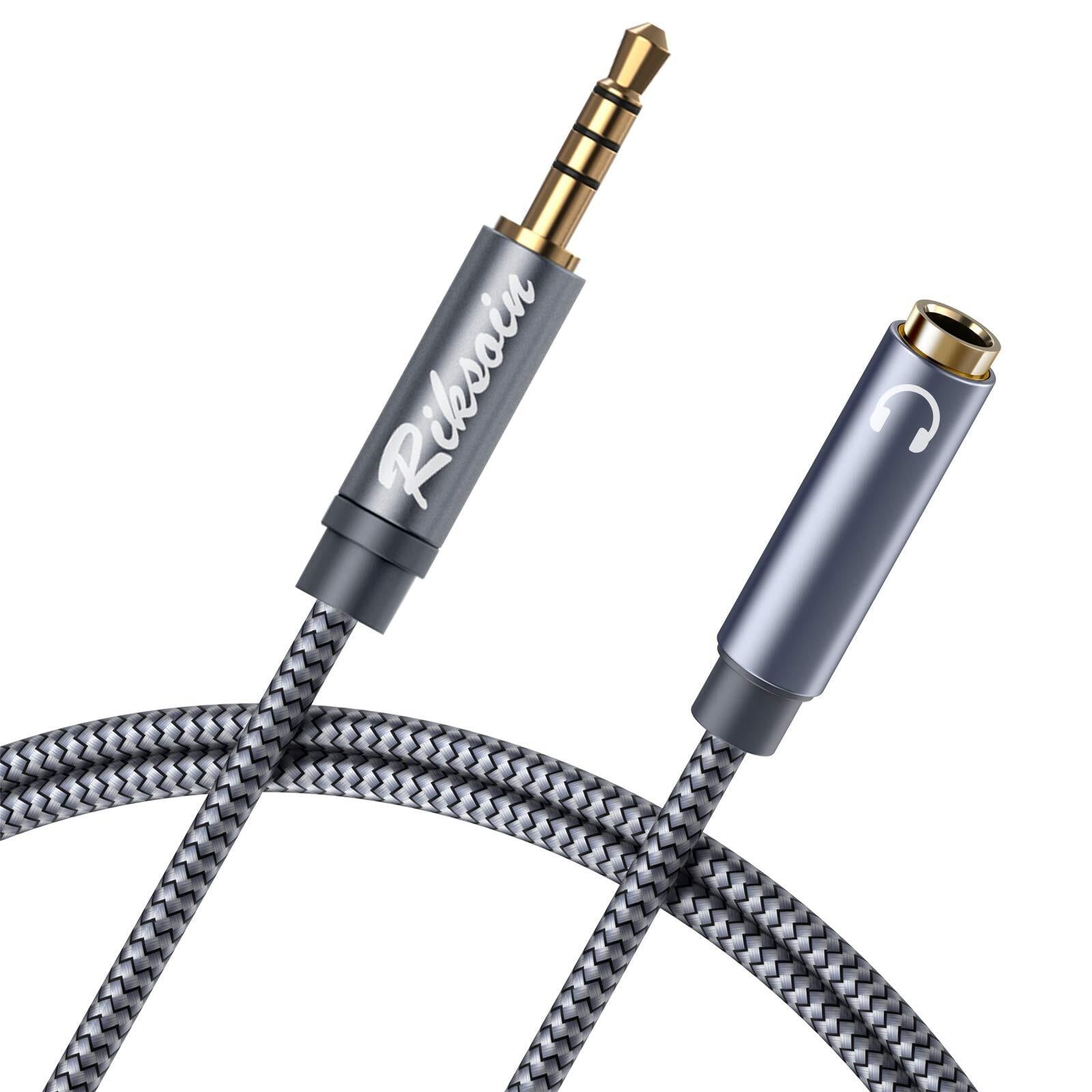【限定セール】4極 イヤホン 延長コード RIKSOIN (1.2m) 3.5mm ステレオミニプラグ イヤホンジャック 延長 ヘッドホン延長コード iPhone/Android、スピーカー、ヘッドセット、車などに対応 (グレー)