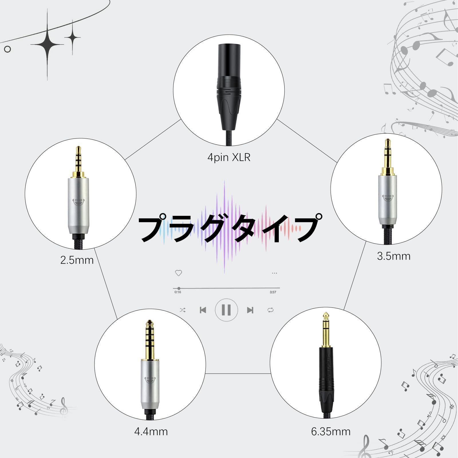 【様々な機器に対応】ヘッドホンリケーブルのプラグは5種類(3.5mm、2.5mm、4.4mm、6.35mm、4Pin XLR)があり。使用機器に合わせお選びいただけます。