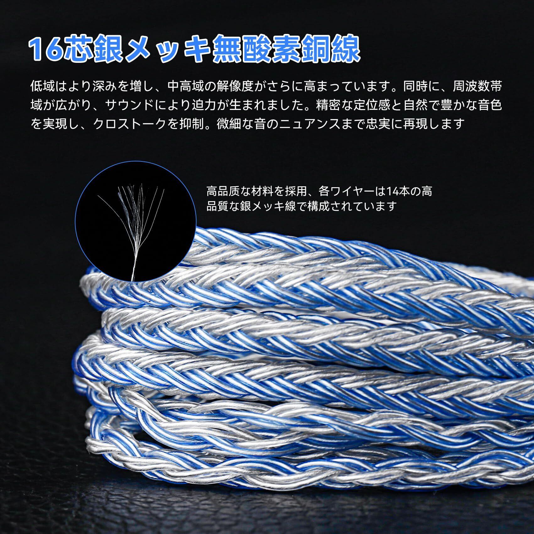 mmcx ケーブルには16芯の銀メッキOFC線を使用することで、低域はより深みを増し、 中高域は更なる解像感を獲得します。また、帯域が広がる上に、迫力が増してきます。正確な定位感と自然で表情豊かなサウンドを可能にし、クロストークを抑制し微細な音までリアルに表現できます。
