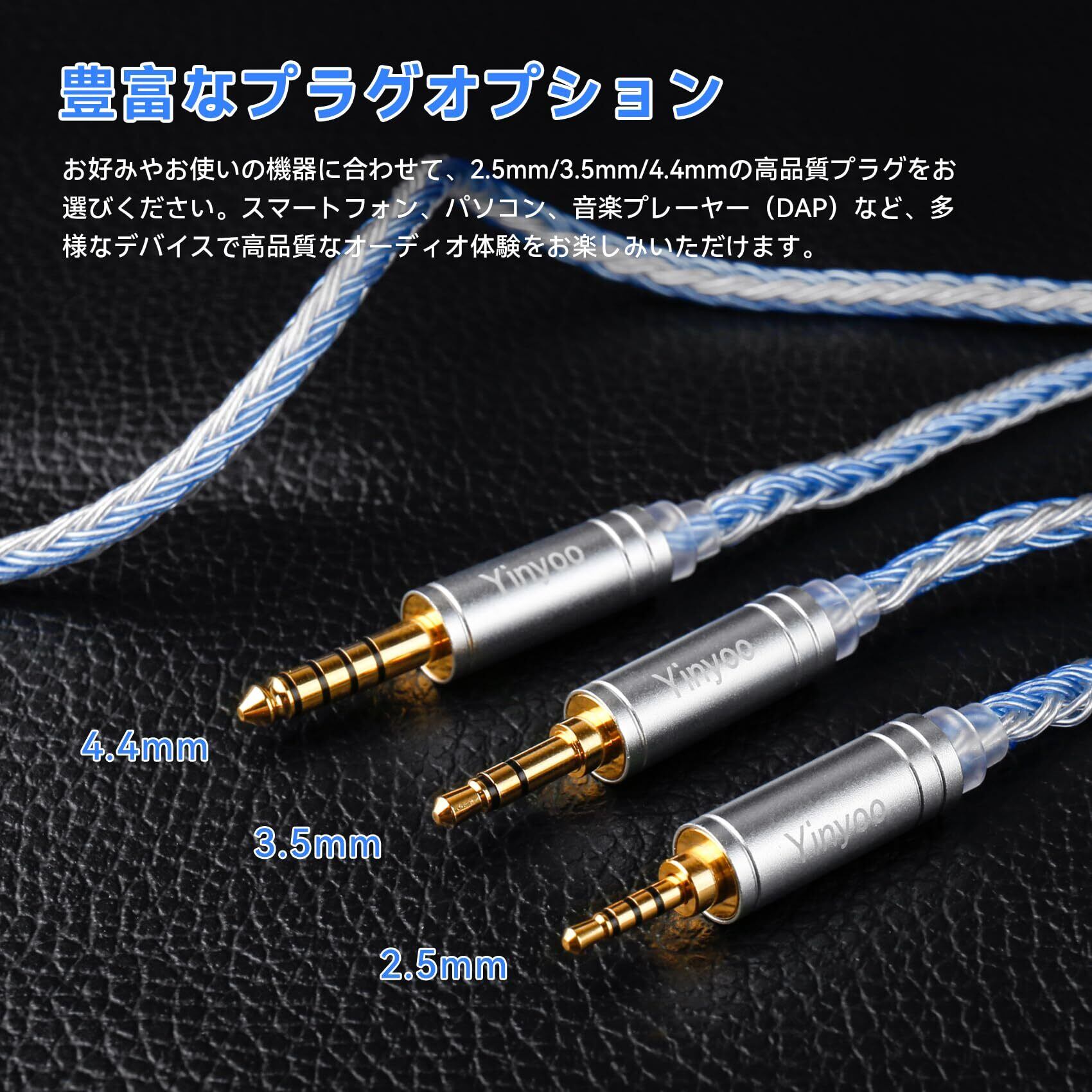 Yinyoo イヤホン リケーブル mmcx 3.5mm YYX4849 銀メッキ線 16芯イヤフォン ケーブル 音質改善 イヤモニ アップグレードケーブル hi-fiオーディオ ヘッドフォン 交換用 SE315/SE425/SE535/SE846/SE215/UE900 ie200/ie100pro/ie300/ie600 等に対応(mmcx・3.5mmプラグ)