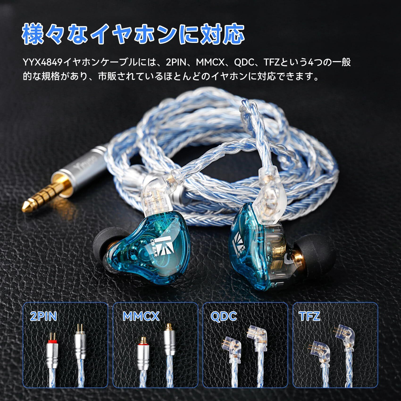■【高音質を実現する銀メッキリケーブル!】YinyooのYYX4849リケーブルは、音質改善を特長とし、16芯の銀メッキ線を使用することで、音の透明感を格段に向上させます。お気に入りのイヤフォンをさらに魅力的な音質で楽しむことが可能です。
