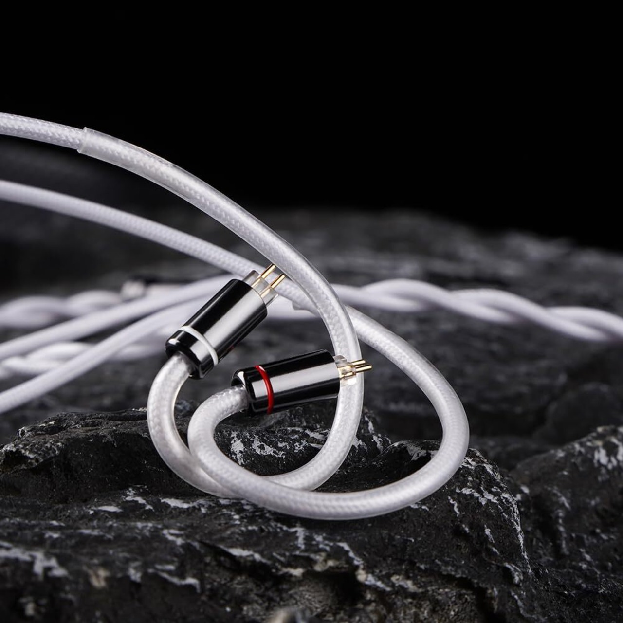 【装着感良好、真っ白の見た目 】SnowWingsアップグレードケーブルは柔らかくしなやかな素材が使用されているため取り回しは良好、後々ケーブルに巻き癖が付いたりといった心配もしない、超軽量で耐久性を確保。雪のような真っ白の見た目を採用し、hifiマニアさんは好みによっていろんなイヤホンに組み合わせやすいです