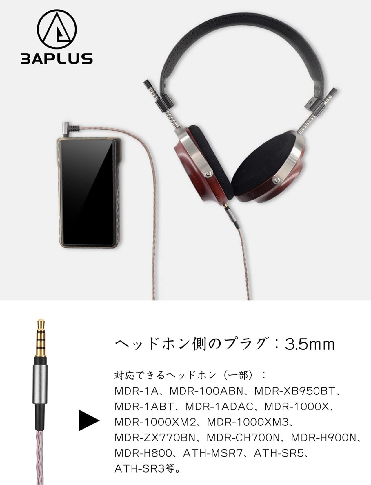 ●●「 対応機種 」ヘッドホン側のプラグは3.5mmストレート型、対応できるヘッドホン:MDR-1A、MDR-100ABN、MDR-XB950BT、MDR-1ABT、MDR-1ADAC、MDR-1000X、MDR-1000XM2、MDR-1000XM3、MDR-ZX770BN、MDR-CH700N、MDR-H900N、MDR-H800、ATH-MSR7、ATH-SR5、ATH-SR3等(一部)。 出力機器側は2.5mm、3.5mm、4.4mmL字型があってパソコン、スマホ、DAP、プレーヤー等に適合します。