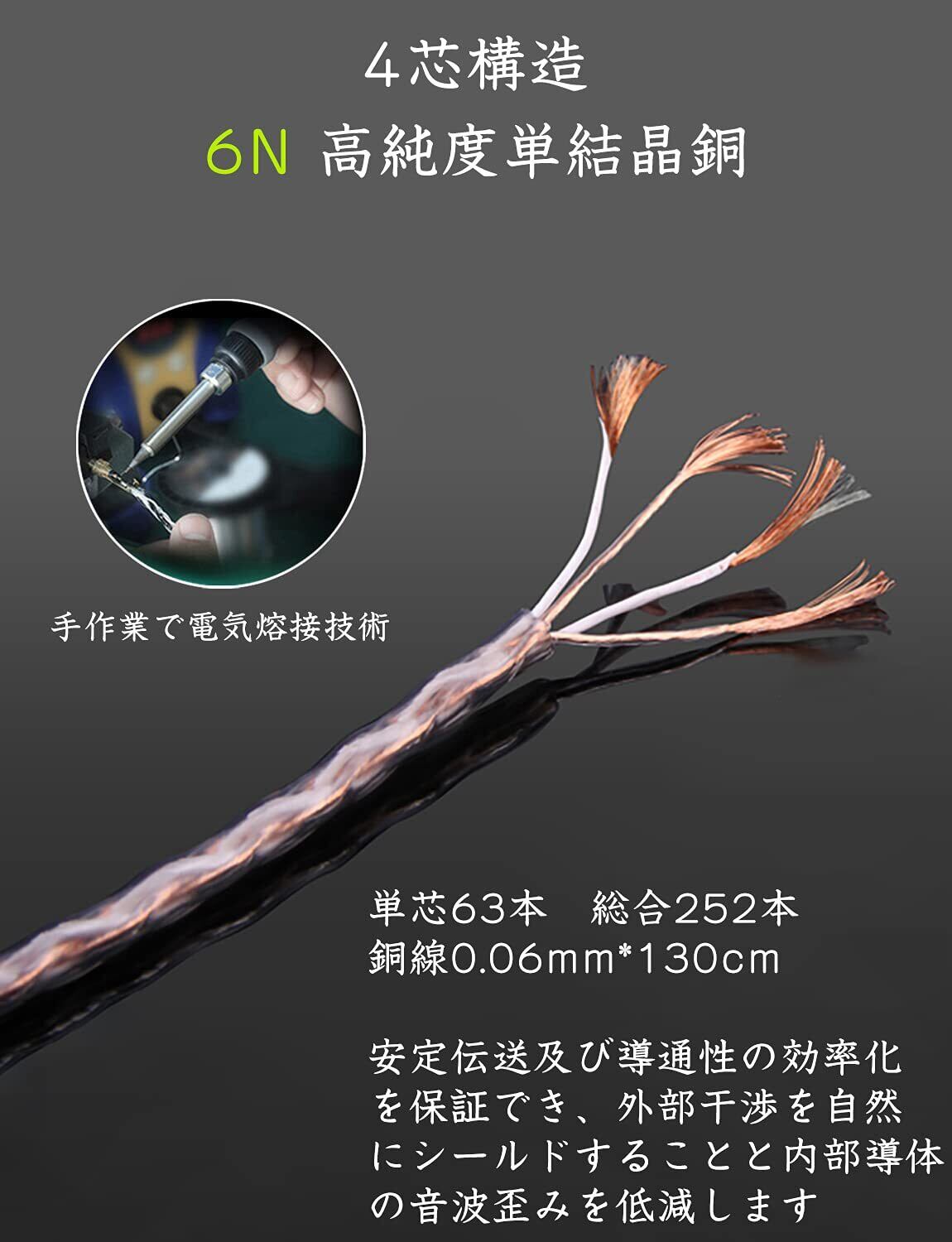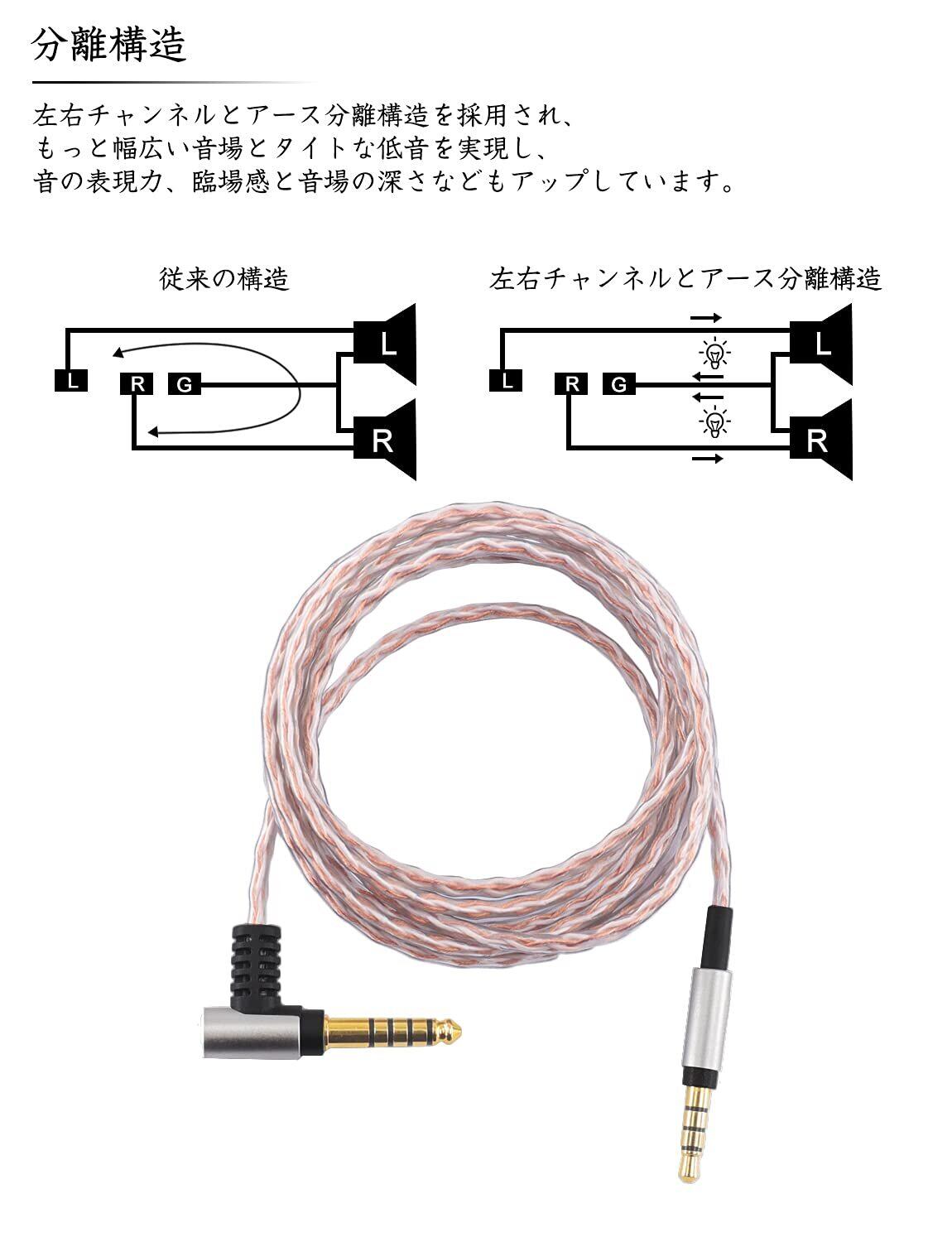 ●●「 高品質素材 」リケーブルの被膜外層はTPU材料で内層はPTFE材料を使用しました。 コードが絡みにくいし、取り回しが良好、柔らかくて、心地がいいです。 断線の心配もありません。 長さ130cm、外径3mm、4芯Braid(編み)構造で単芯63本の単結晶無酸素銅を主材にします。