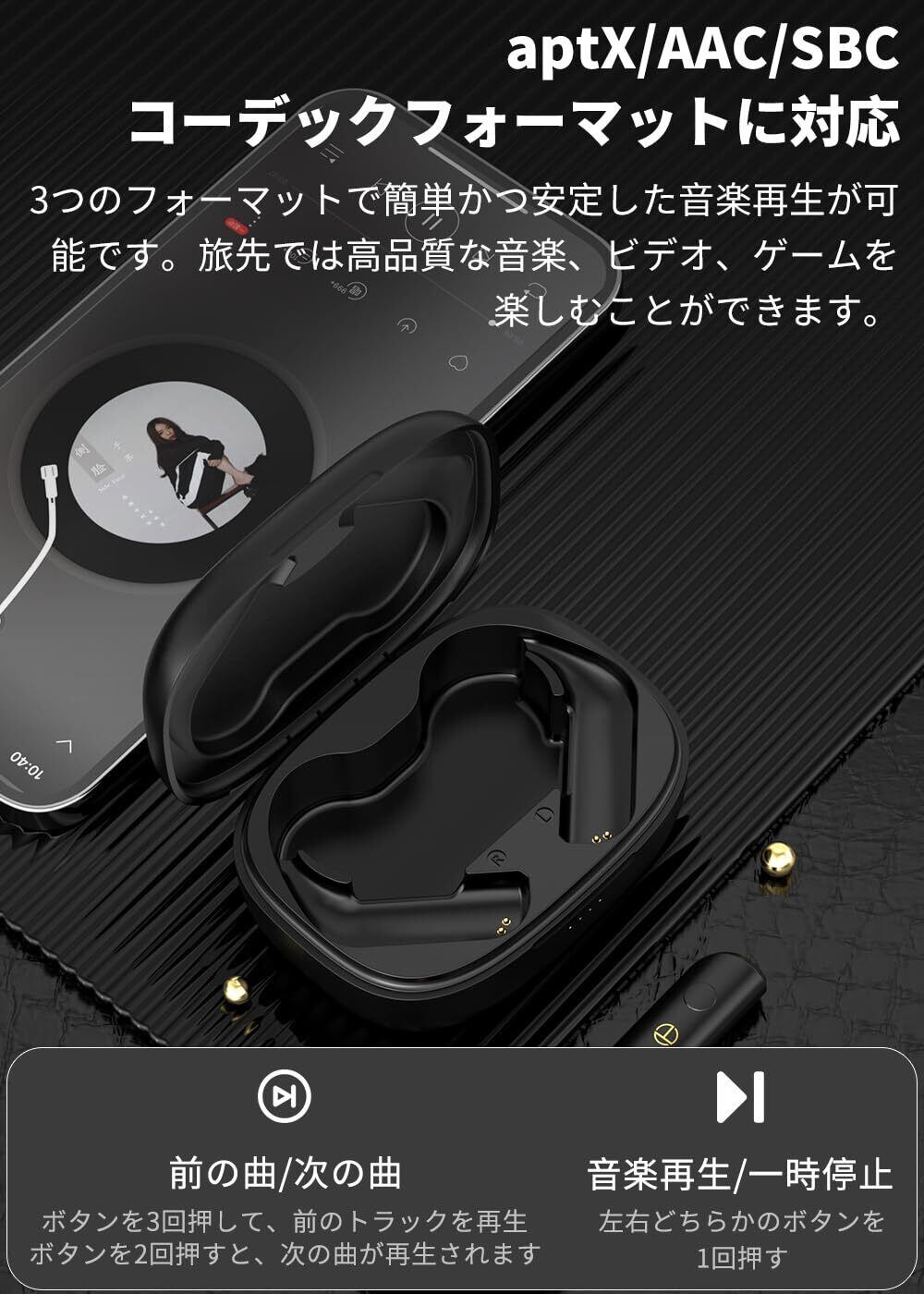 ■【高音質音源を最大限に活用!】このケーブルは、aptX、AAC、SBCをサポートし、高音質なオーディオ信号をワイヤレスで伝送します。あなたの音楽を鮮明でクリアにお楽しみいただけます。