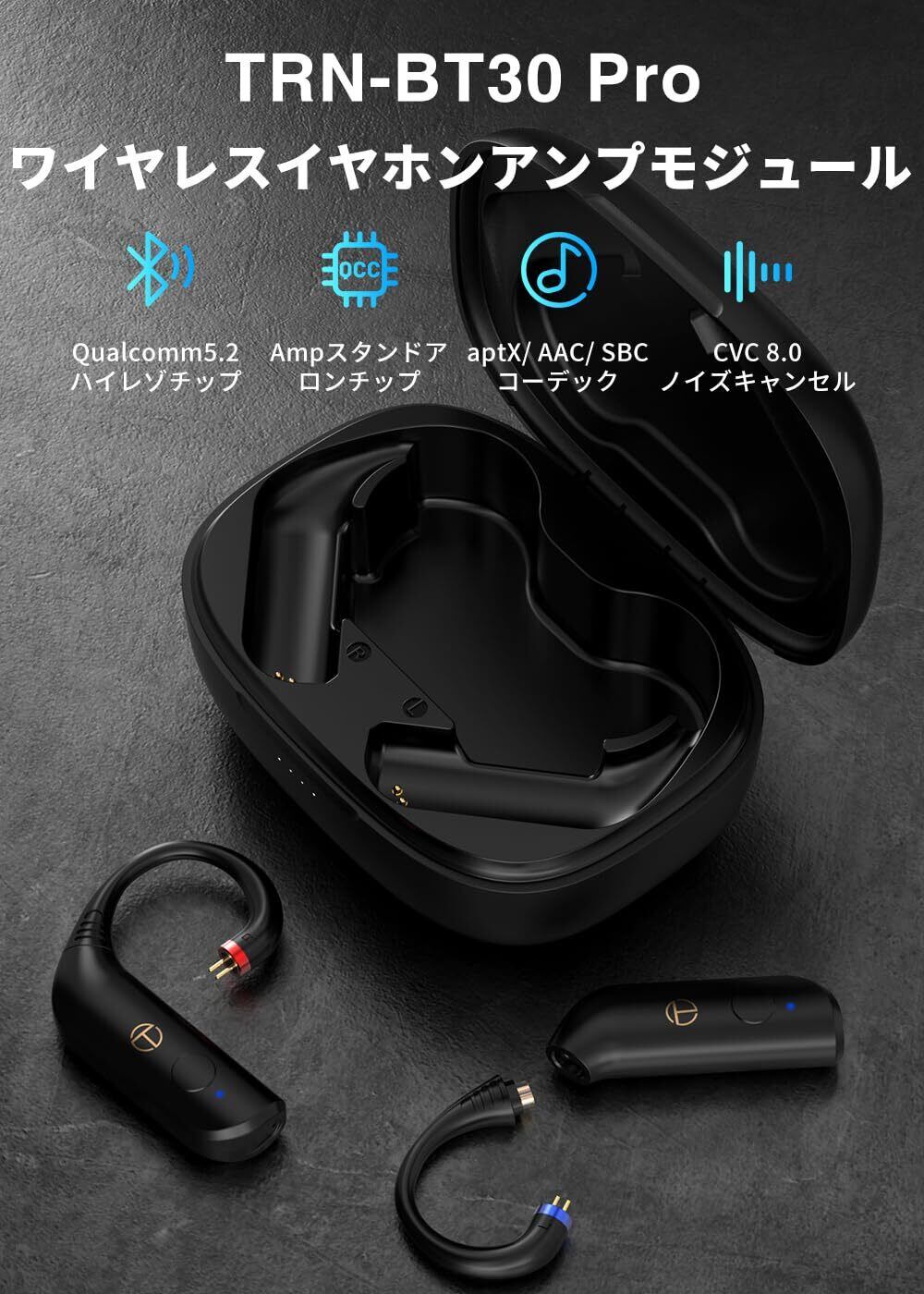 【在庫限り】TRN BT30pro 【有線イヤホンの無線化】 aptX/AAC/SBC対応 2Pin QDC MMCX Bluetooth ワイヤレス ケーブル リケーブル ハイインピーダンス対応 自動ペアリング 低遅延 マイク付き TELEC認証 (BT30-Pro)