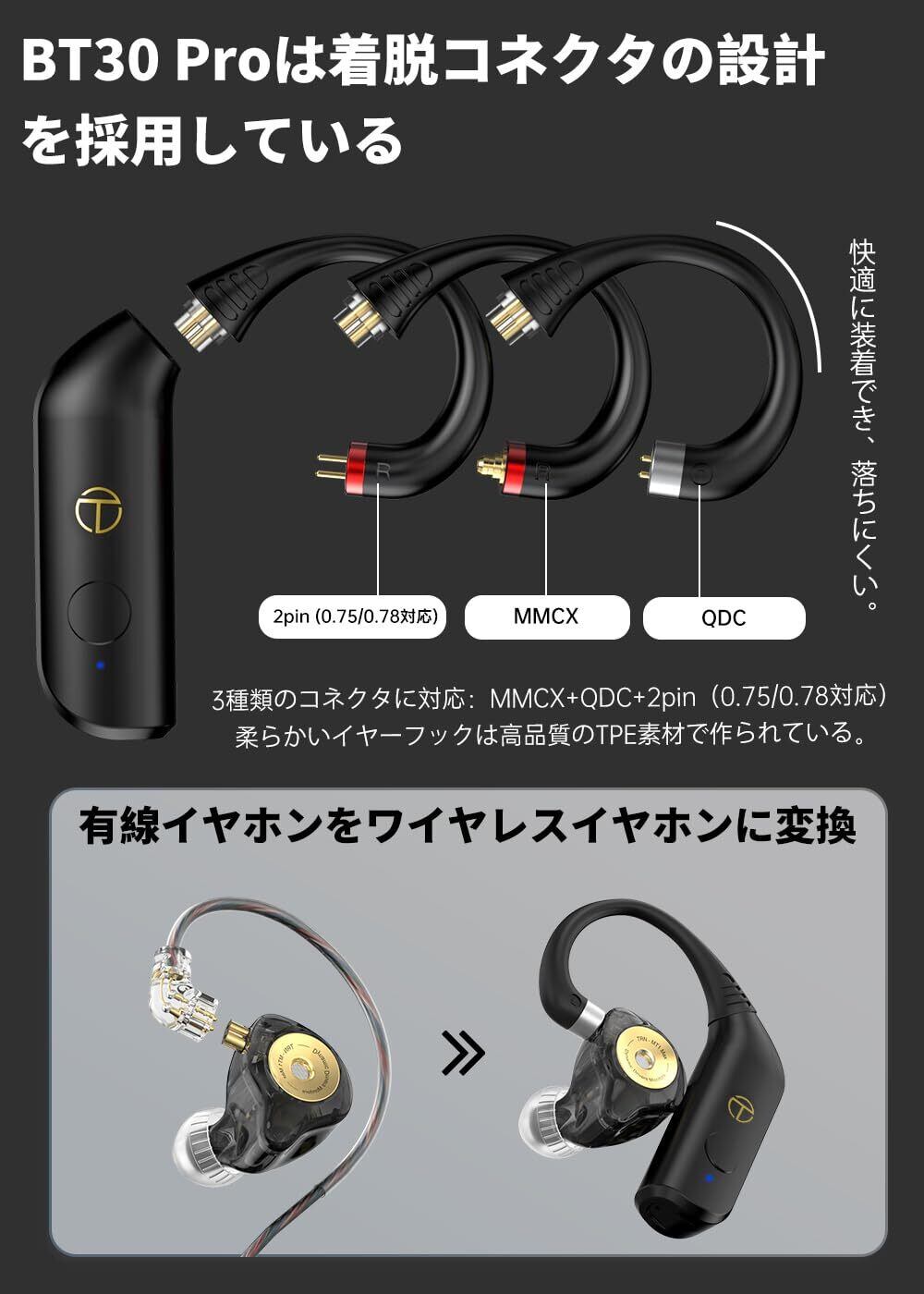 TRN BT30pro 【有線イヤホンの無線化】 aptX/AAC/SBC対応 2Pin QDC MMCX Bluetooth ワイヤレス ケーブル リケーブル ハイインピーダンス対応 自動ペアリング 低遅延 マイク付き TELEC認証 (BT30-Pro)