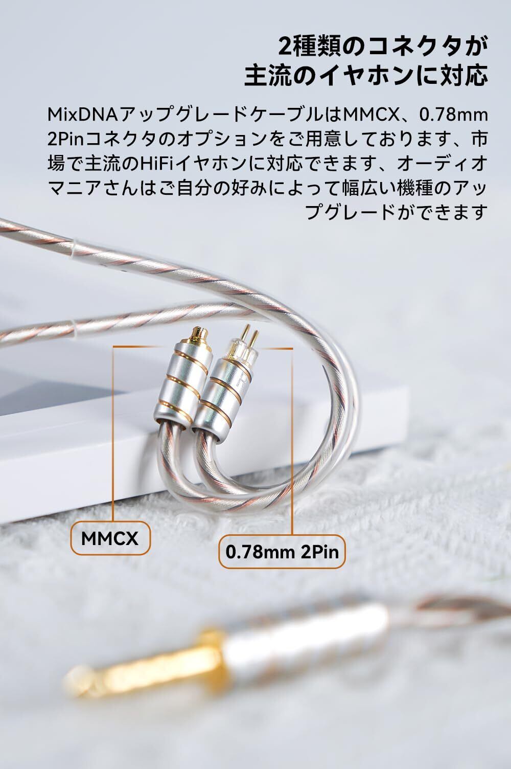 【バリエーション揃い、個性のあるパーツ】MixDNAアップグレードケーブは0.78㎜ 2Pin、MMCX各端子の3.5㎜、4.4mmプラグもの揃い、市場で多くのプレーヤーとイヤホンにも対応でき、新規デザインした個性のあるパーツを採用し、いろんなイヤホンにも組み合わせしやすいです