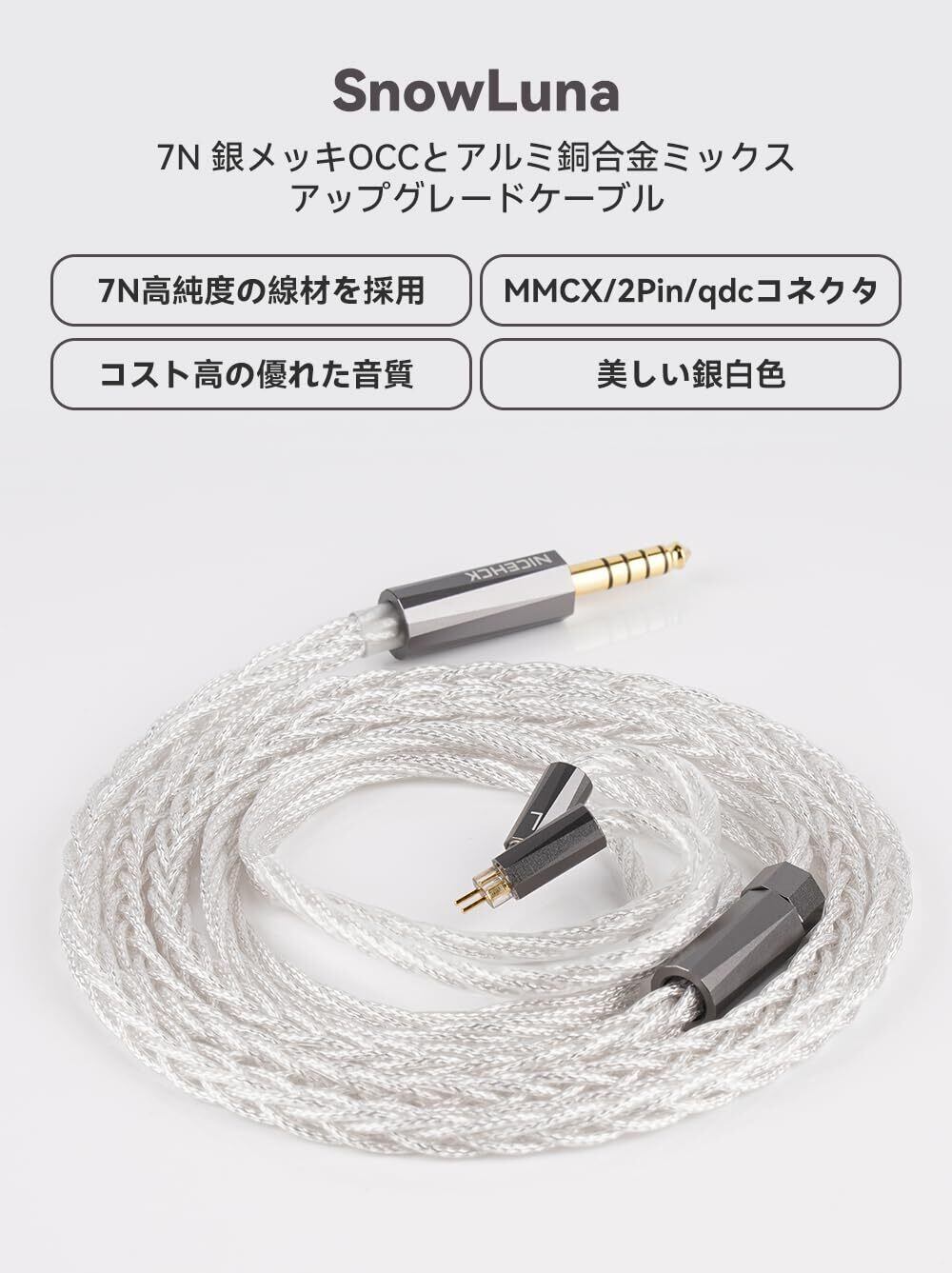■【音質を飛躍的に向上させるアップグレードケーブル!】NICEHCK SnowLunaリケーブルは、7N高純度OCC銀メッキとアルミ銅合金を組み合わせた最先端のケーブルです。このプレミアム素材は、音質を劇的に改善し、クリアでダイナミックなサウンドを実現します。あなたの音楽体験を新たな次元へと引き上げることでしょう!