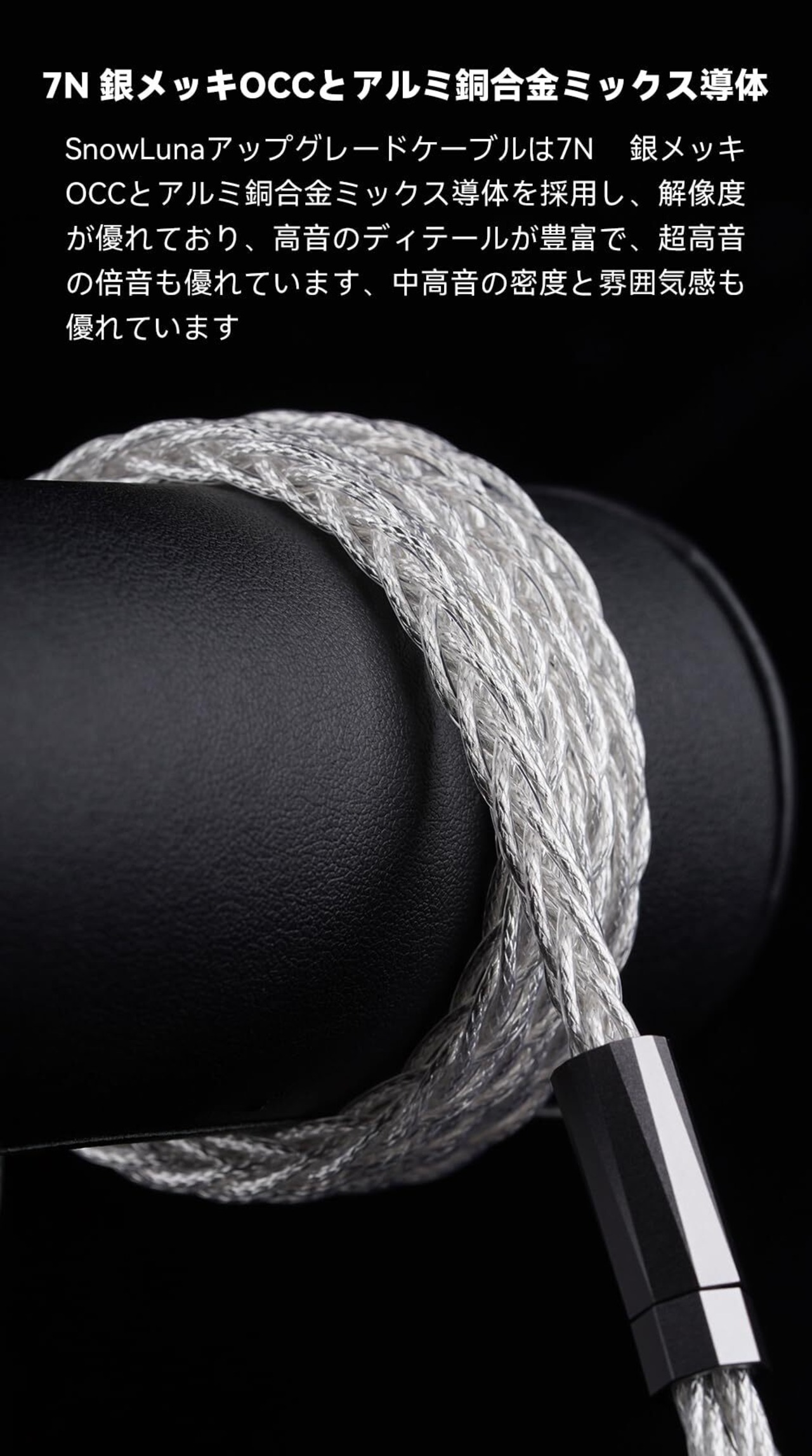 【7N 銀メッキOCCとアルミ銅合金ミックス導体】SnowLunaアップグレードケーブルは7N 銀メッキOCCとアルミ銅合金ミックス導体を採用し、7N高純度の線材はハイエンドな音質を実現する