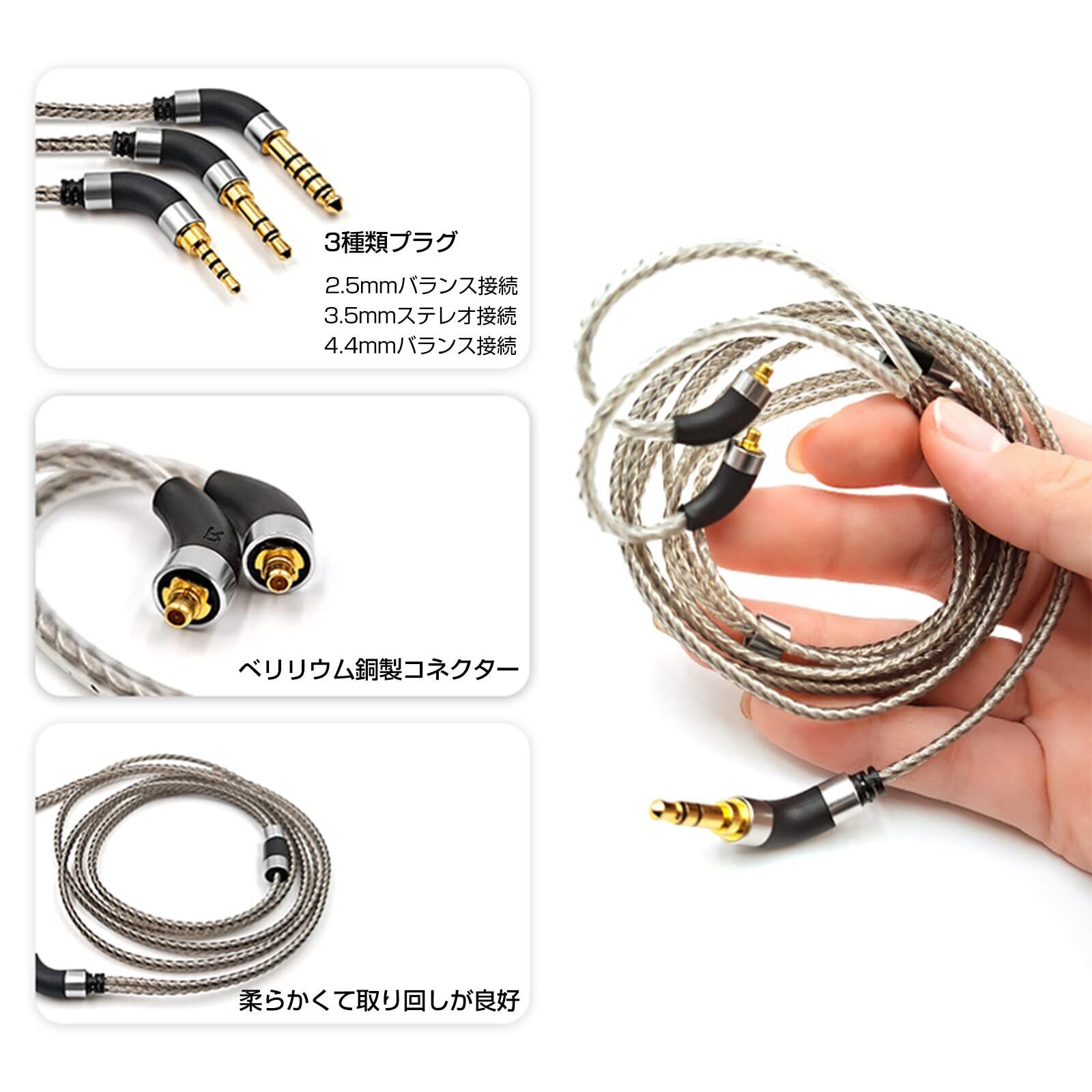 【2025最新】3APLUS plus25 リケーブル mmcxケーブル 2.5mm イヤホンケーブル 銀メッキ 高純度単結晶銅 4芯 Shu-re SE215 / SE425 / SE535 / SE846等イヤホンに互換性がある 長1.2m