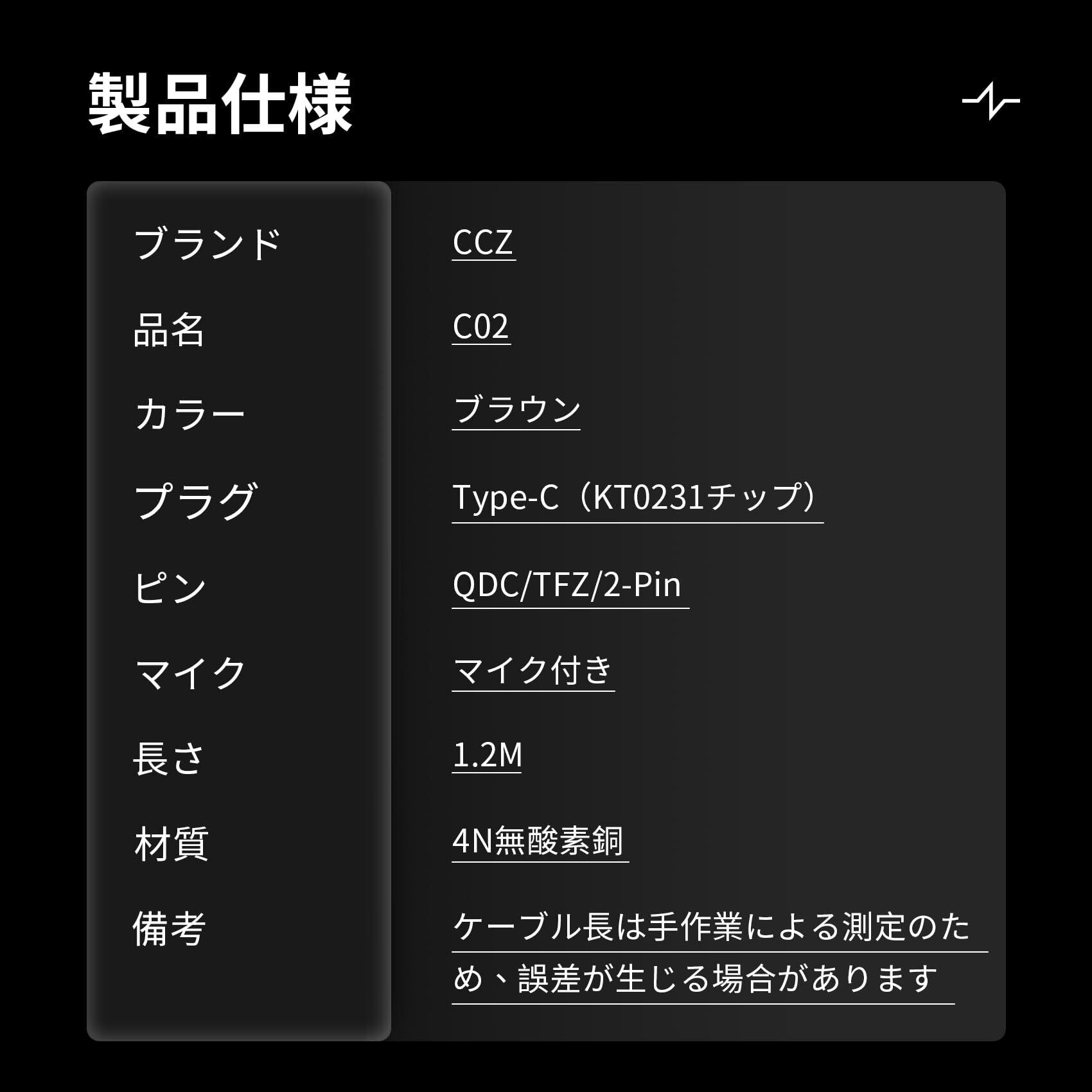 Yinyoo CCZ C02【TYPE-C】 タイプcリケーブル イヤホンケーブル イヤモニ交換用ケーブル 4N 84芯無酸素銅ダブル並列 KT0231 DACデコーダチップ搭載 HIFI音質 ノイズキャンセリング搭載 絡まりにくい設計 金メッキピン ゲーム/通話/学習に最適マイク付きブラウンリケーブル(2PIN&マイク付き)