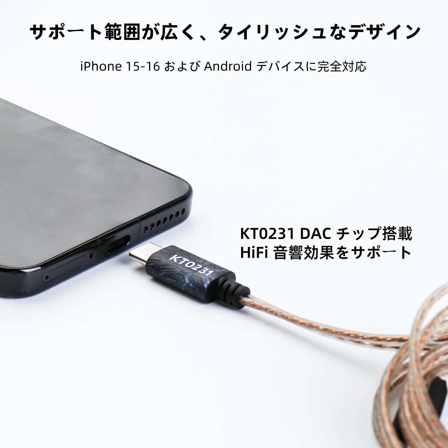 ❥【TYPE-Cプラグ & DACデコーダチップ】 CCZ C02交換用ケーブルはTYPE-Cプラグを採用しており、変換アダプター不要でスマートフォンやタブレットなどのデバイスに直接接続可能。挿すだけで、高品質な音楽を楽しめます。 イヤホン交換ケーブルにはDACデコーダチップを内蔵。5,000回の抜き差しテストをクリアしており、スムーズな接続性と耐久性をします。