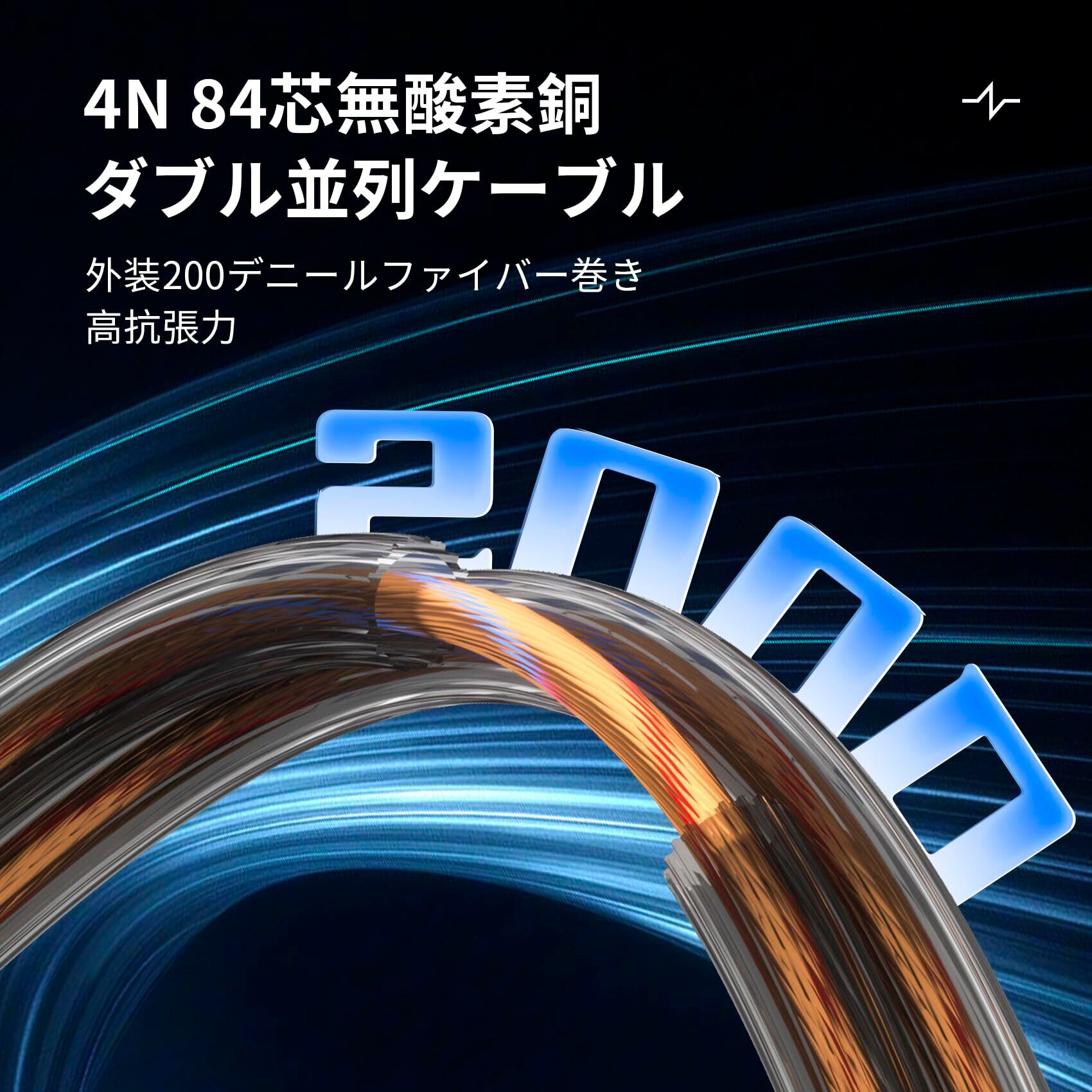 ❥【絡まり防止設計 】 CCZ ZC02の交換用ケーブルは精密な平行二線配置を採用し、片側への捻じれ力を相殺することで、ケーブルの自然な回転絡まりを防止。ポケットに無造作にしまっても、取り出した時は整然とした状態を保ちます。さらに、交換用ケーブル内の高弾性無酸素銅コアは柔軟で耐久性に優れ、変形しにくい特性を備えています。簡単に元の形状に戻るため、頑固な絡まり結節ともお別れです。