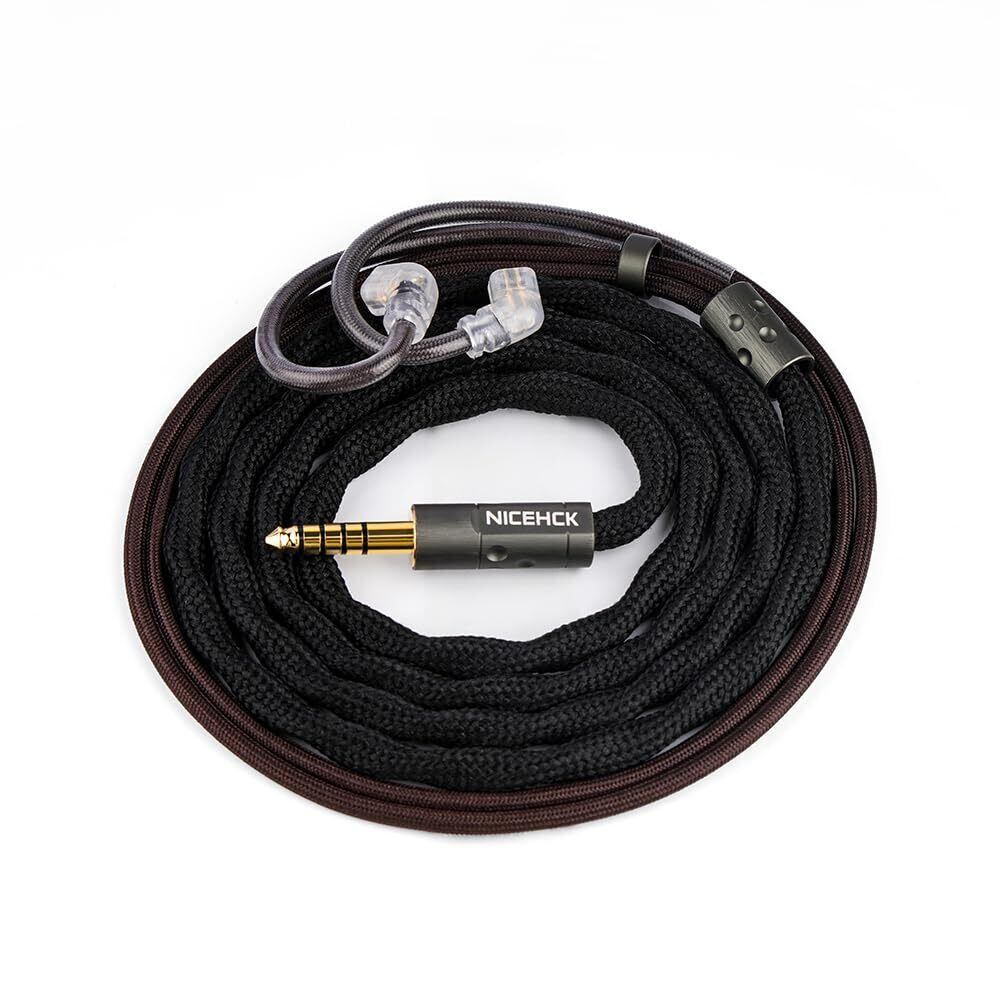 NICEHCK S77 イヤホンリケーブル アップグレードケーブル 7N 単結晶銅厚銀メッキ導体 7N純度 厚い銀メッキ 交換用イヤモニ 音質改善 hifi 衝撃吸収ネットデザイン 豊富なディテール 金属製コネクタ 着脱式 1.2m DIY (4.4mm qdc 2Pin)