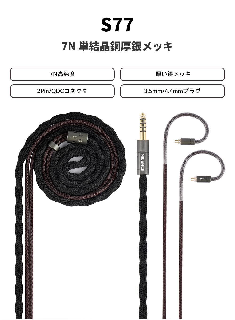 【限定セール】NICEHCK S77 イヤホンリケーブル アップグレードケーブル 7N 単結晶銅厚銀メッキ導体 7N純度 厚い銀メッキ 交換用イヤモニ 音質改善 hifi 衝撃吸収ネットデザイン 豊富なディテール 金属製コネクタ 着脱式 1.2m DIY (4.4mm qdc 2Pin)
