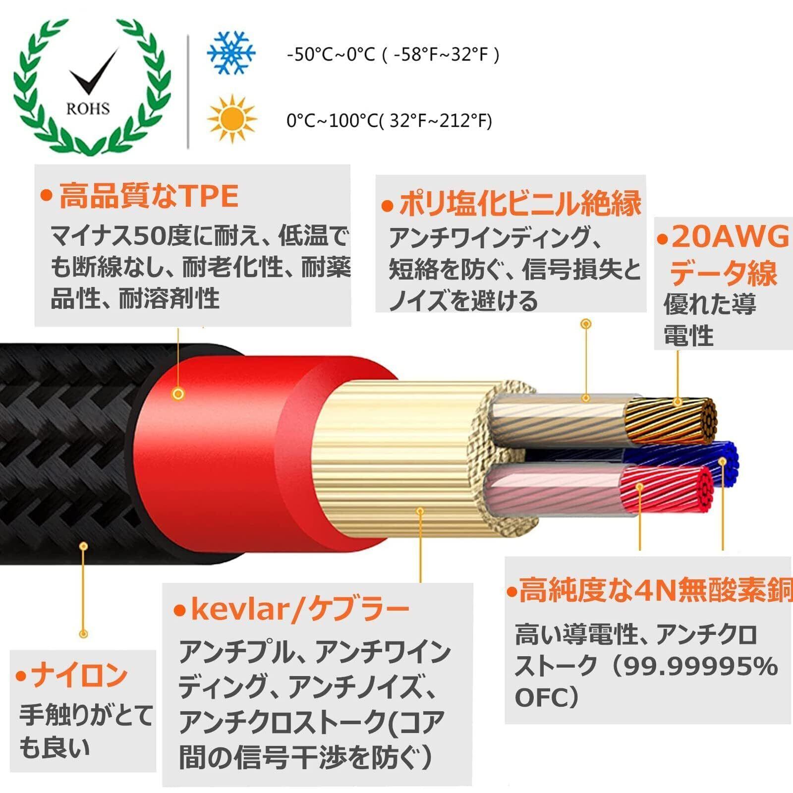 ■【取り扱いやすさが魅力のデザイン!】全長1.2mの長さは、多様な使用シーンにも対応可能。柔軟な編組設計により、絡まりが少なく、持ち運びもストレスフリー。日常使いにも最適で、長時間のリスニングを快適に楽しむことができます。