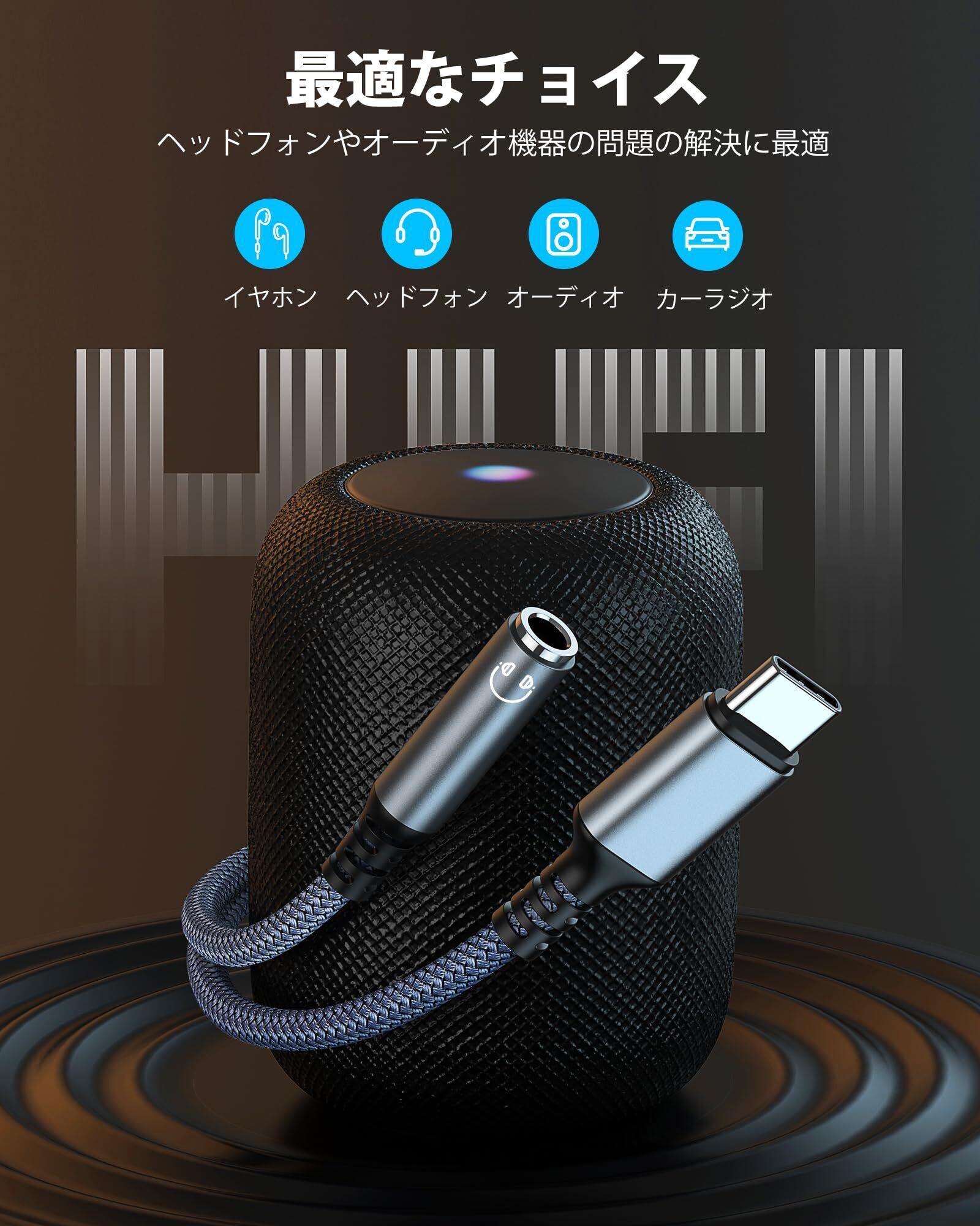 【在庫限り】Highwings イヤホンジャック 変換 タイプC イヤホン変換 USB-C イヤホンジャック 3.5mm アダプター オーディオアダプタ ハイレゾ音質 高耐久ケーブ DAC搭載 ナイロン編み イヤホン ヘッドホン ヘッドセット スマートフォン タブレット 音量調節/通話/音楽/Phone 15シリーズ/iPad/Mac/アンドロイド対応 (グレー)