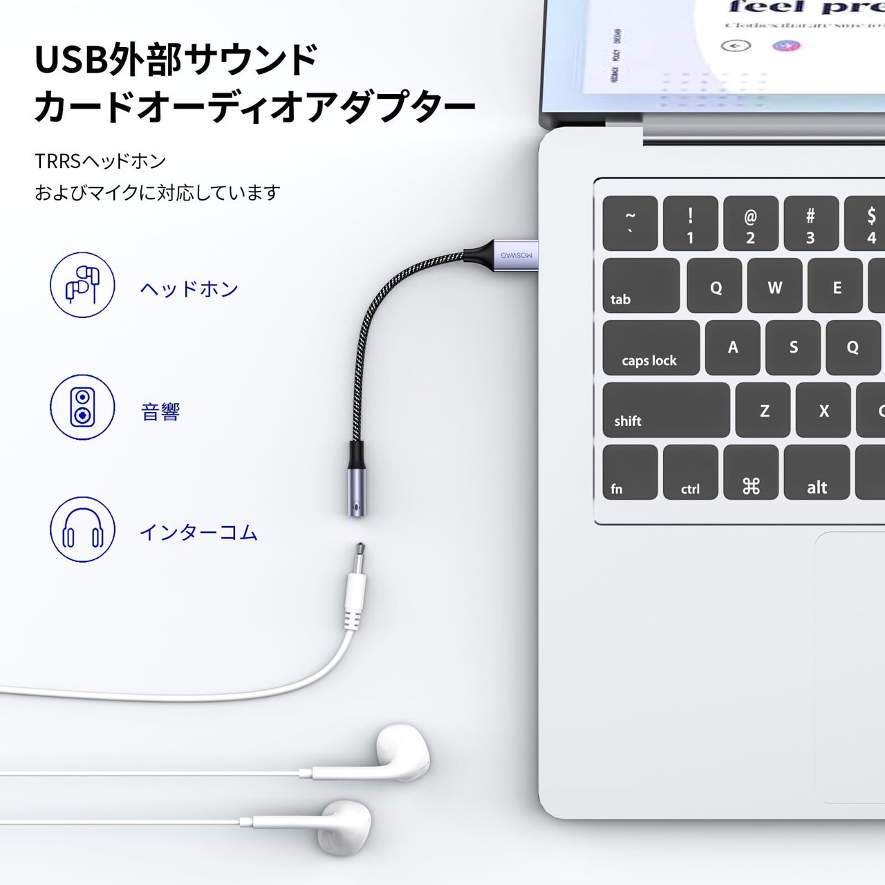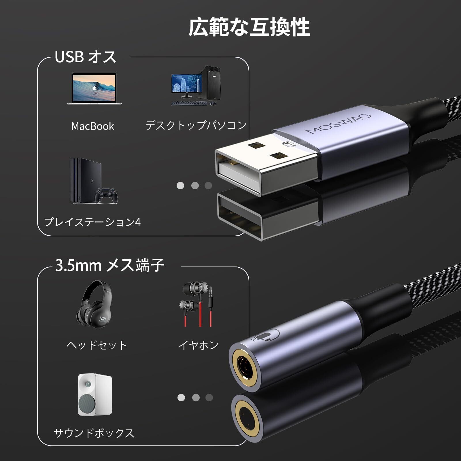【在庫限り】MOSWAG USB オーディオ 変換アダプタ 外付け サウンドカード 4極 TRRS 変換 usb-3.5mm オーディオケーブル イヤホン、ヘッドフォン、PC、ラップトップ、Linux、デスクトップ、PS4、その他のデバイスに対応