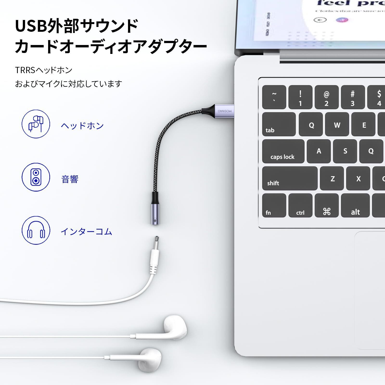 MOSWAG USB オーディオ 変換アダプタ 外付け サウンドカード 4極 TRRS 変換 usb-3.5mm オーディオケーブル イヤホン、ヘッドフォン、PC、ラップトップ、Linux、デスクトップ、PS4、その他のデバイスに対応
