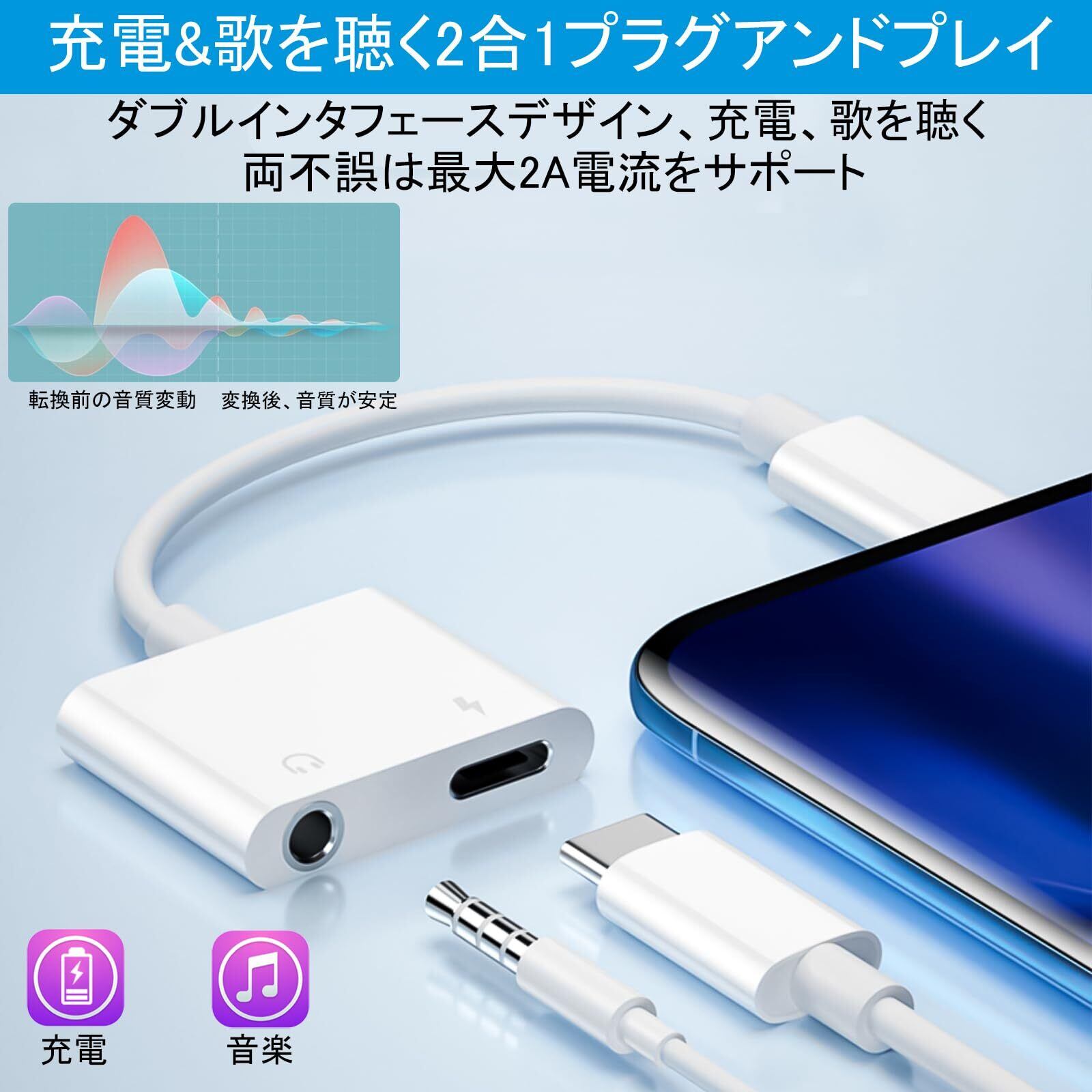 Type-C to 3.5mm phone 2in1変換イヤホンジャック 【2025新設計】 30W急速充電同時音 通話可能音楽調節 搭載16bit/48KHz Hi-Fi音質 イヤホン充電 リモコン通話 Android/Pad/PadPro/ phone15 / 15pro /16/16pro/17/17pro windows/Type Cなど機器に適用