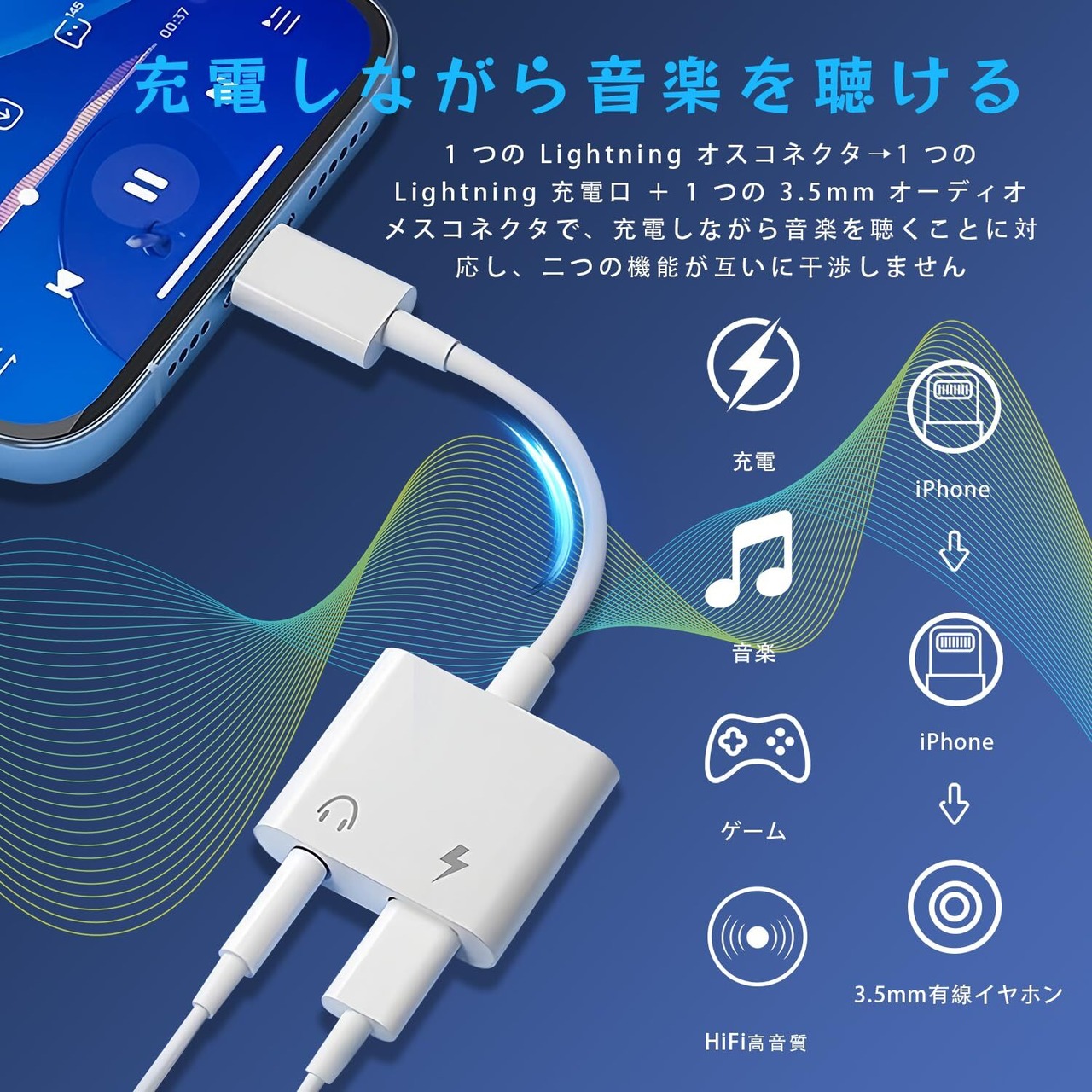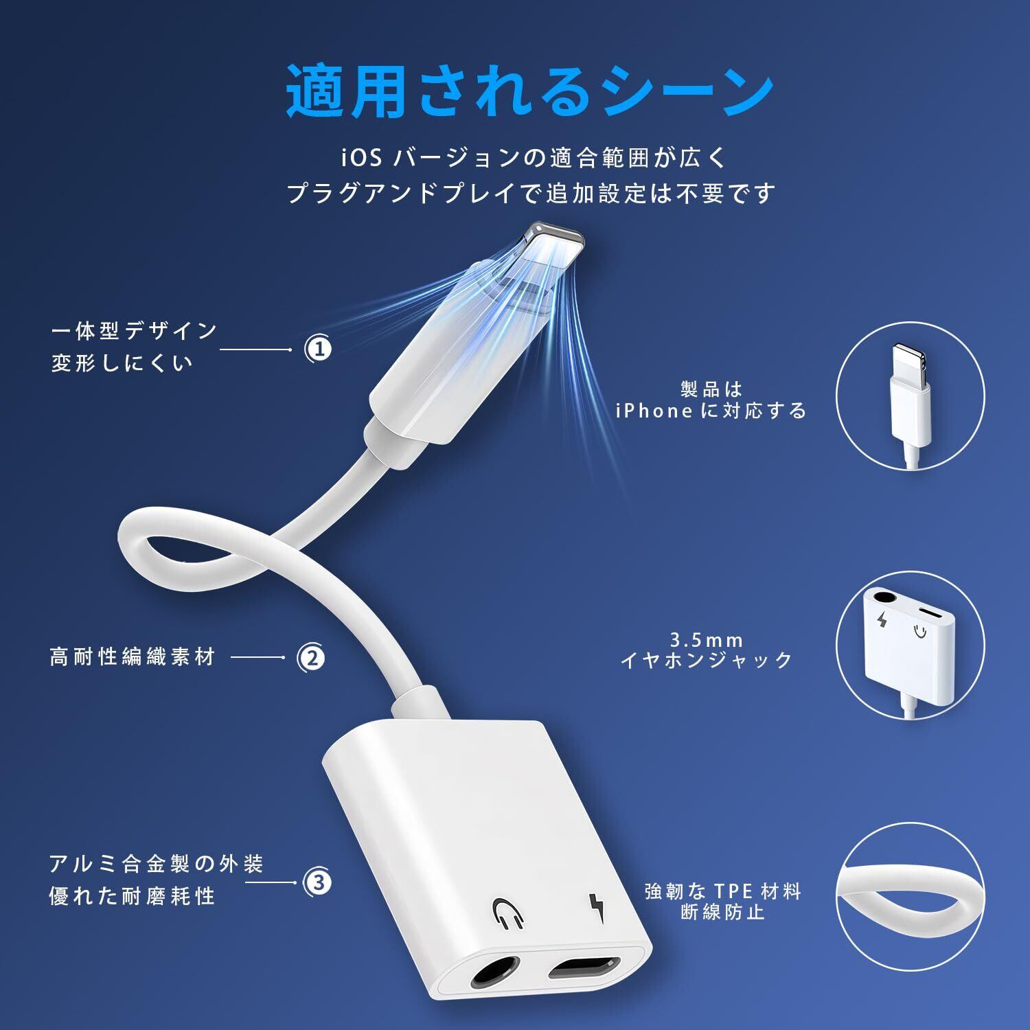 「このiPhoneイヤホンジャック変換アダプタで、音楽と充電の両方を手に入れましょう!皆様のご購入を心よりお待ちしております!」