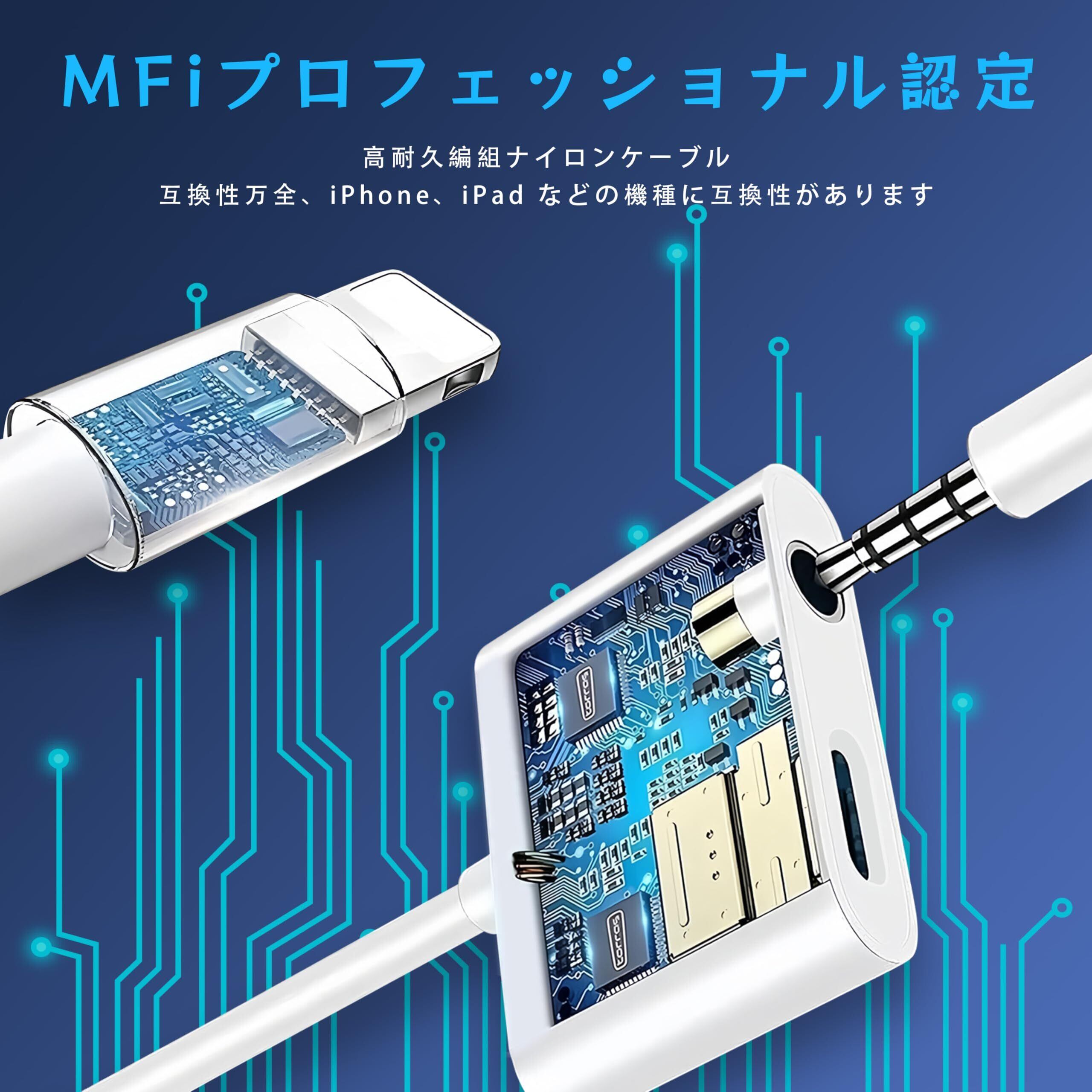 【2025 MFi強化版】 iPhoneイヤホンジャック 変換アダプタ Lightning to 3.5mm phone 2in1変換イヤホンジャック 充電しながらイヤホン30W急速充電同時音楽 搭載24bit/48KHz Hi-Fi音質 iPhone14/13/12/11/11/SE/Xs/Xs Max/XR/X/8/7適用(iOS11-18対応)