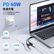 PD 60W超高速充電:USB-C-Type C &充電アダプターは、強力な充電チップを内蔵し、60W PD充電をサポートします。 PD、QC、PPS の急速充電規格を満たしており、ほとんどのデバイスの急速充電に適しています。 充電ケーブルは、様々なデバイスに必要な電圧と電流を特定して満たし、安定性とセキュリティを確保してデバイスを保護します。 ご注意: PD急速充電をサポートするオリジナルのPDアダプターと充電ケーブルを使用してください。