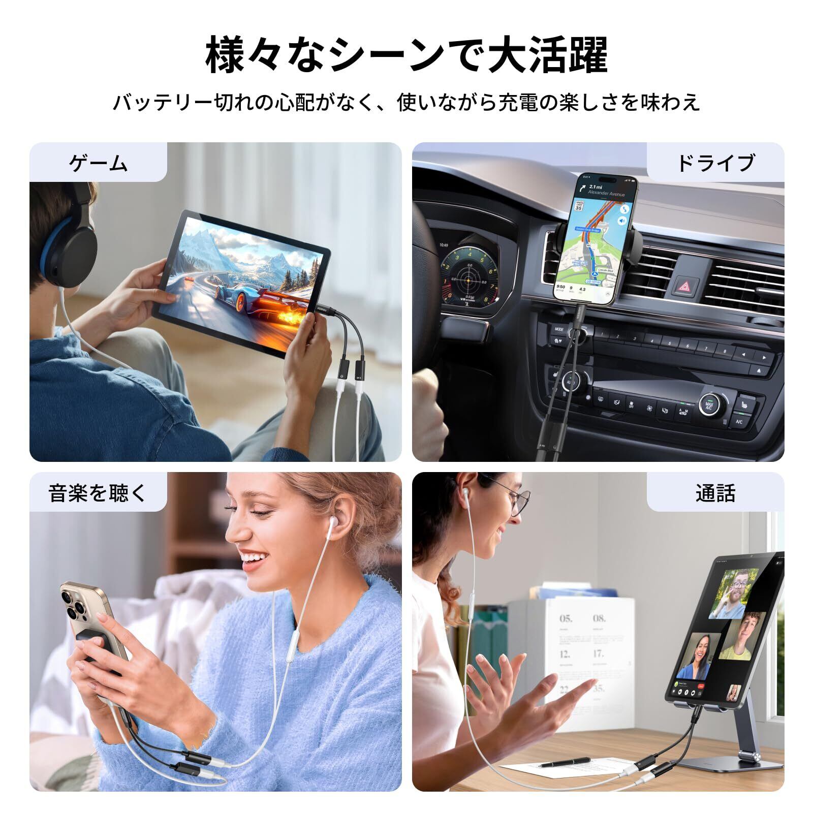 「このType-C to Type-Cイヤホン変換アダプタで、音楽と充電の両方を楽しみましょう!皆様のご購入を心よりお待ちしております!」