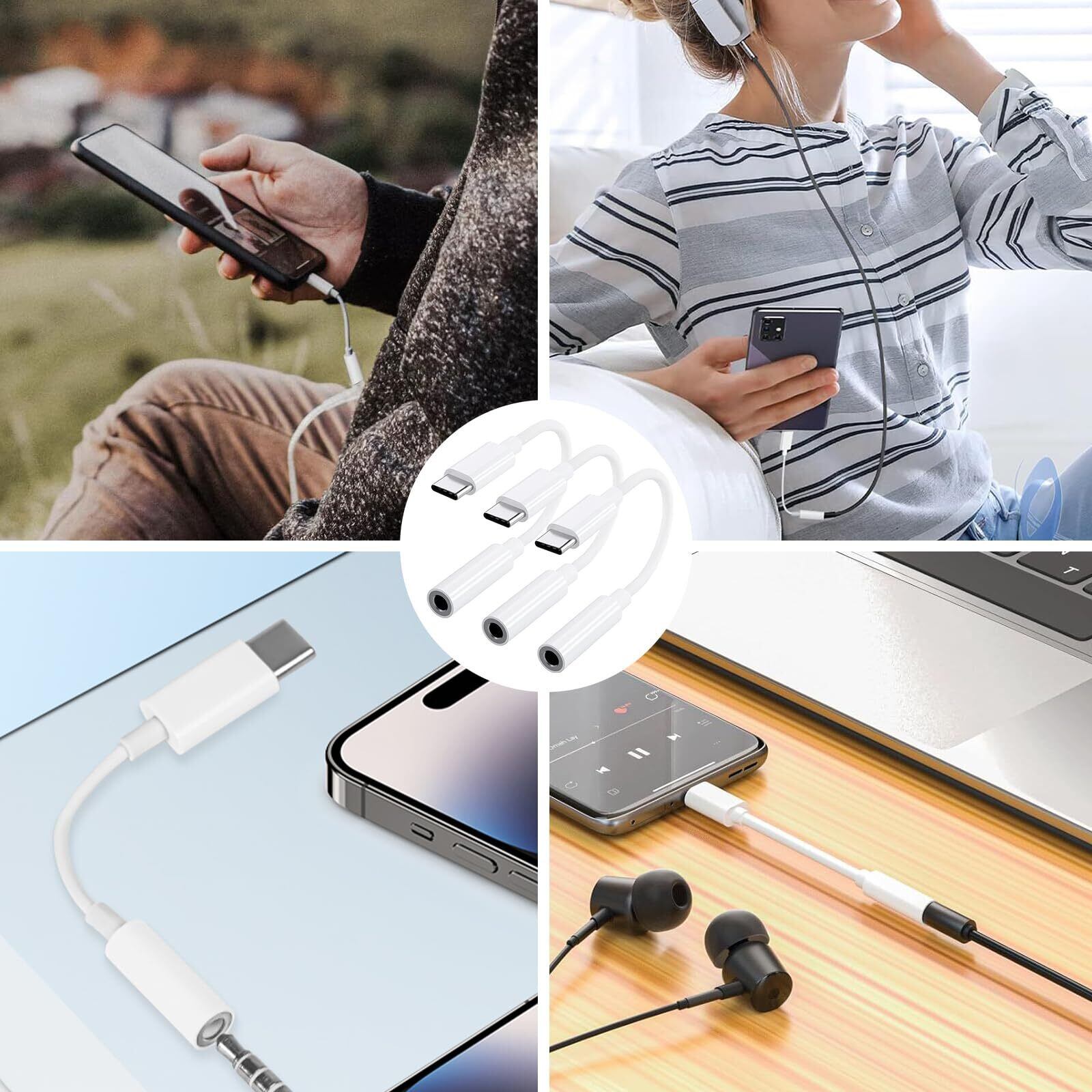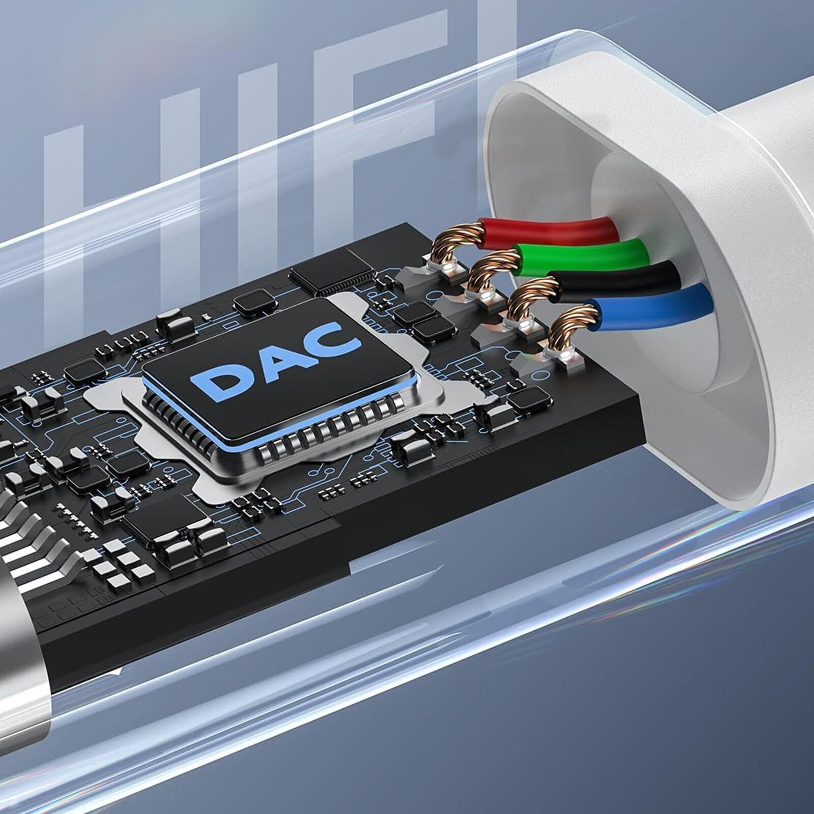 USB-C - 3.5mmヘッドホンジャックアダプター Hi-Fiデジタルオーディオコンバーター DAC内蔵 Type C Auxオーディオドングルケーブル iPhone 15 16/Pro/Plus, iPad Pro, Samsung Galaxy S23, Pixelに対応 1個パック