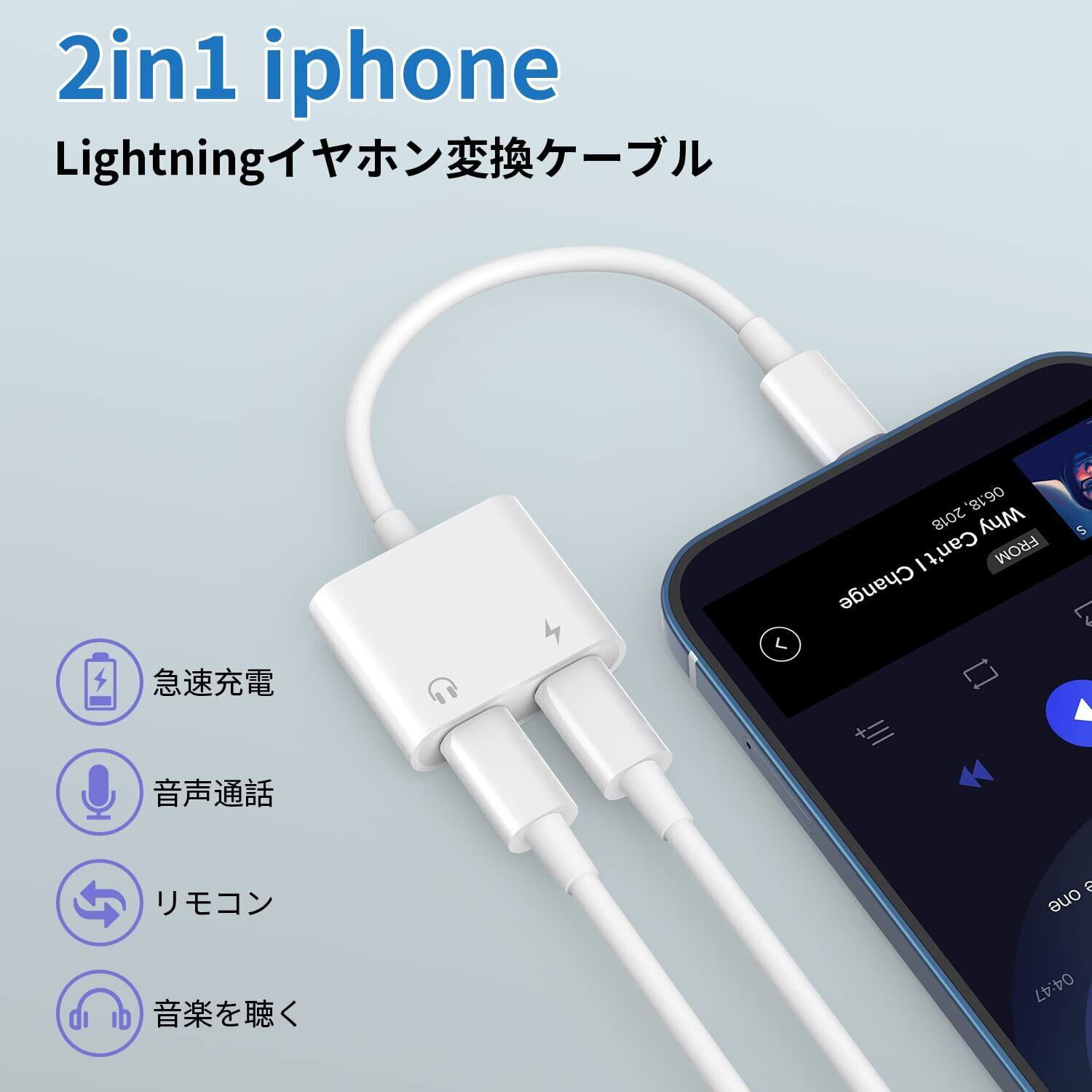 【限定セール】【MFI正規認証品 2024新版】iphoneイヤホン 変換アダプタ 充電/音楽 2in1 iphone変換ケーブル lightningイヤホン 柔らかエコTPE製 急速充電 音楽再生/通話操作対応 純正品チップ iPhone13/12/Xs/Xs max/Xr/8plus/7/7plusなどのiOS13、14、15に対応
