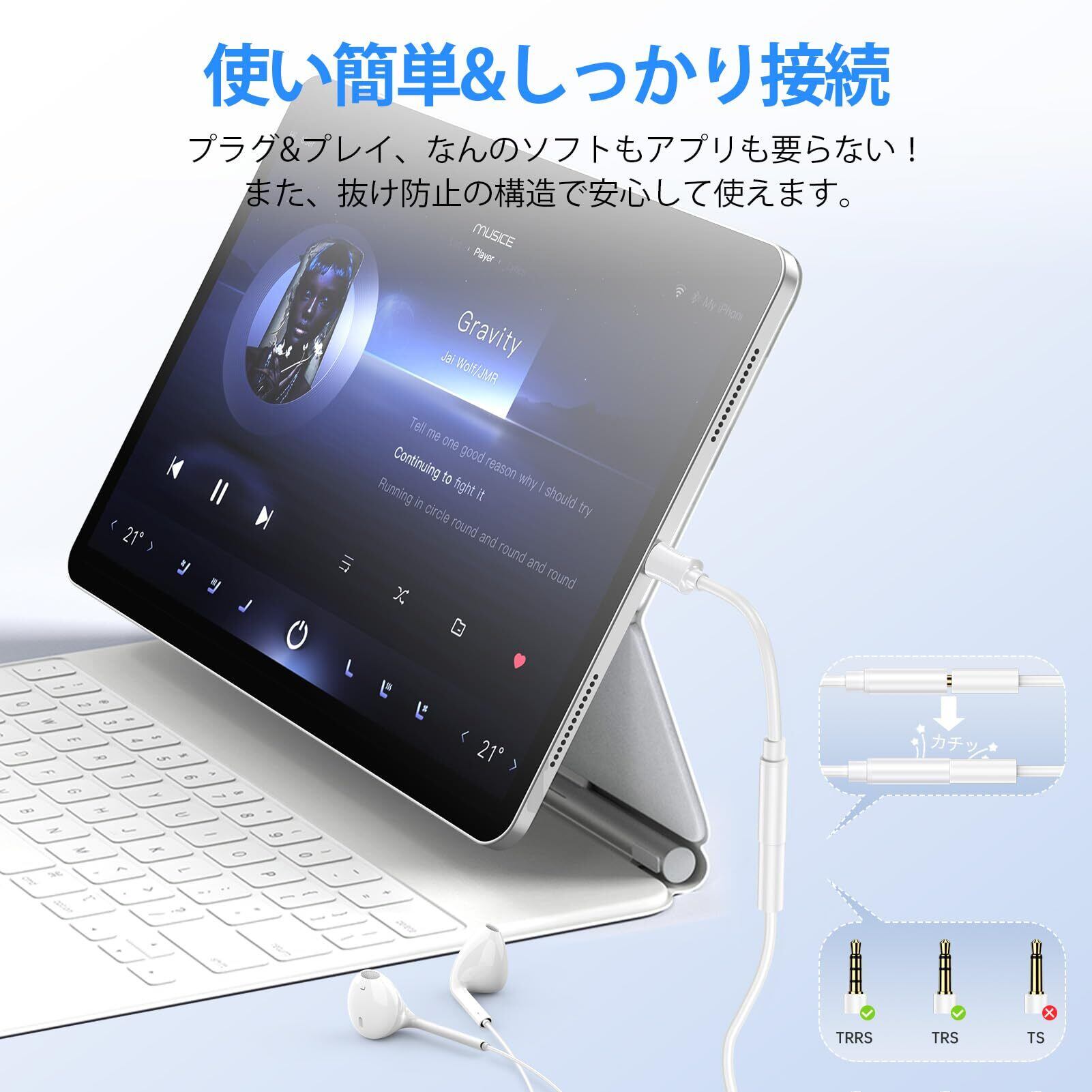 「このGAEF iPhoneイヤホンジャック変換アダプタで、音楽と通話を同時に快適にお楽しみください!皆様のご購入を心よりお待ちしております!」