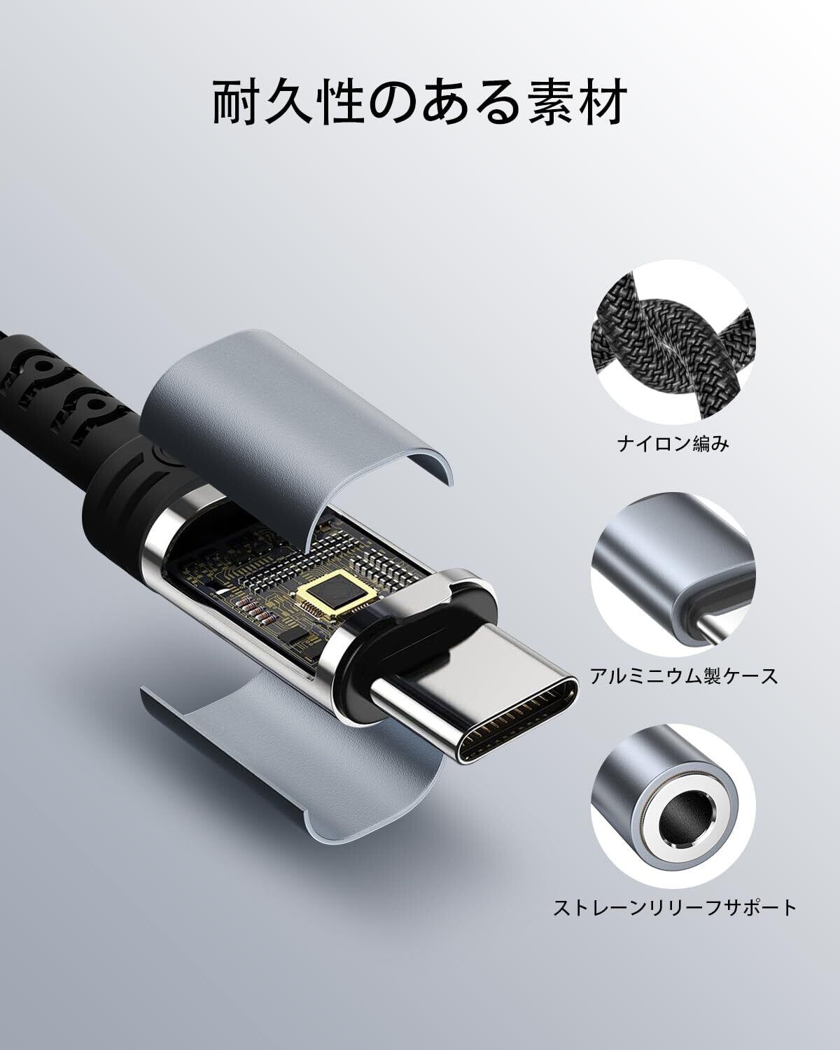 2個 アップグレード版 イヤホンジャック 変換 タイプC Type-C イヤホンアダプタDAC搭載 Hi-Fi音質/音量調節/通話/音楽 イヤホン タイプc 変換アダプタ ナイロン編み USB C 3.5mm 変換コンバーター iPhone 16 15 シリーズに対応、Samsung S25 S24 S23 S22 S20など向け、iPad/MacBook/Pixel/USB Cデバイスなどに対応