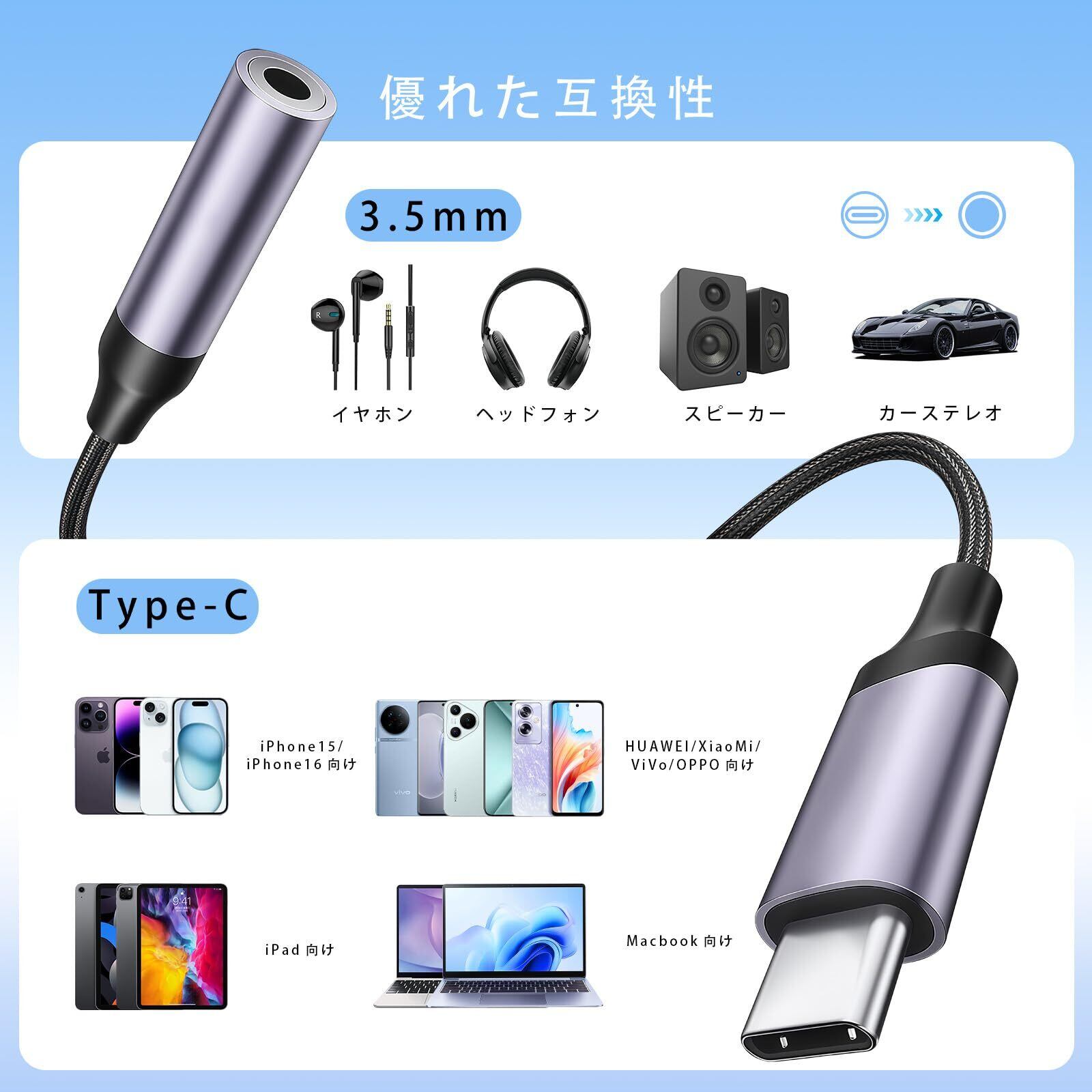 【新着商品】USB C イヤホンジャック変換 USB C-3.5mm イヤホン変換アダプター DAC搭載 24bit/96KHz対応 TRRS/4極 ナイロン編み 3.5mm Aux usb-cオーディジャック 電話/音量調節/音楽対応 iphone16 /15/iPad/iPad Pro/Android/typec機器に適用