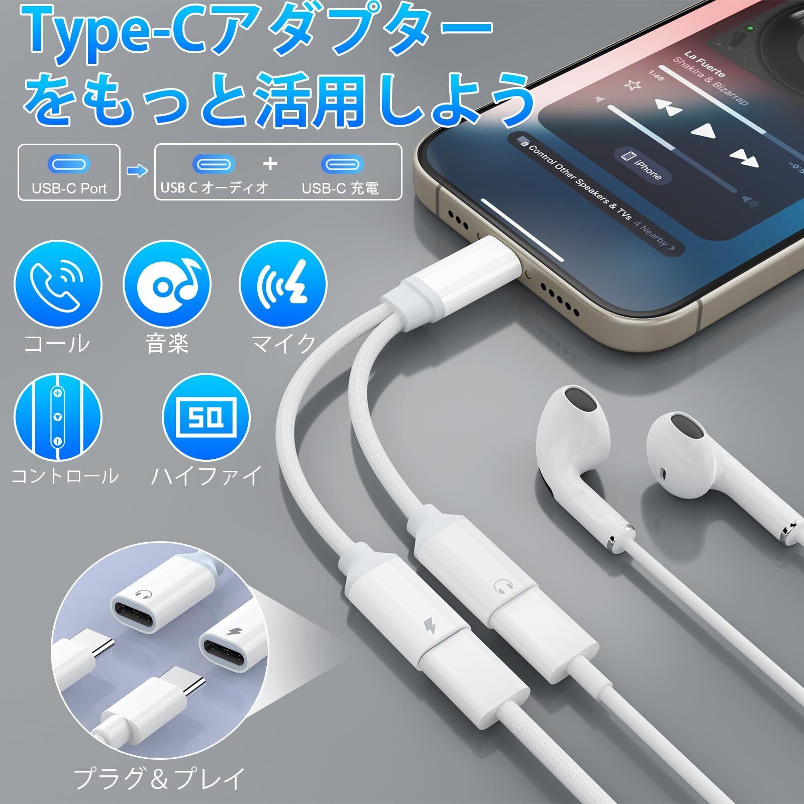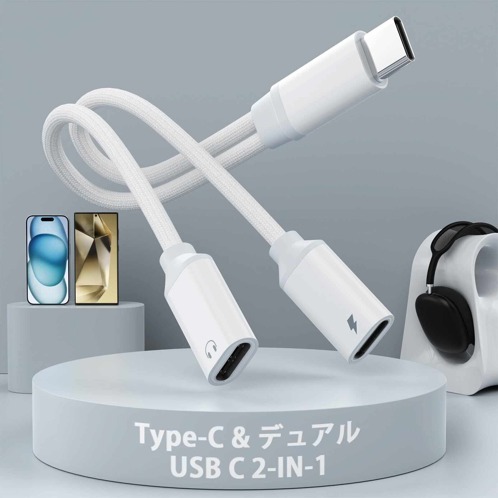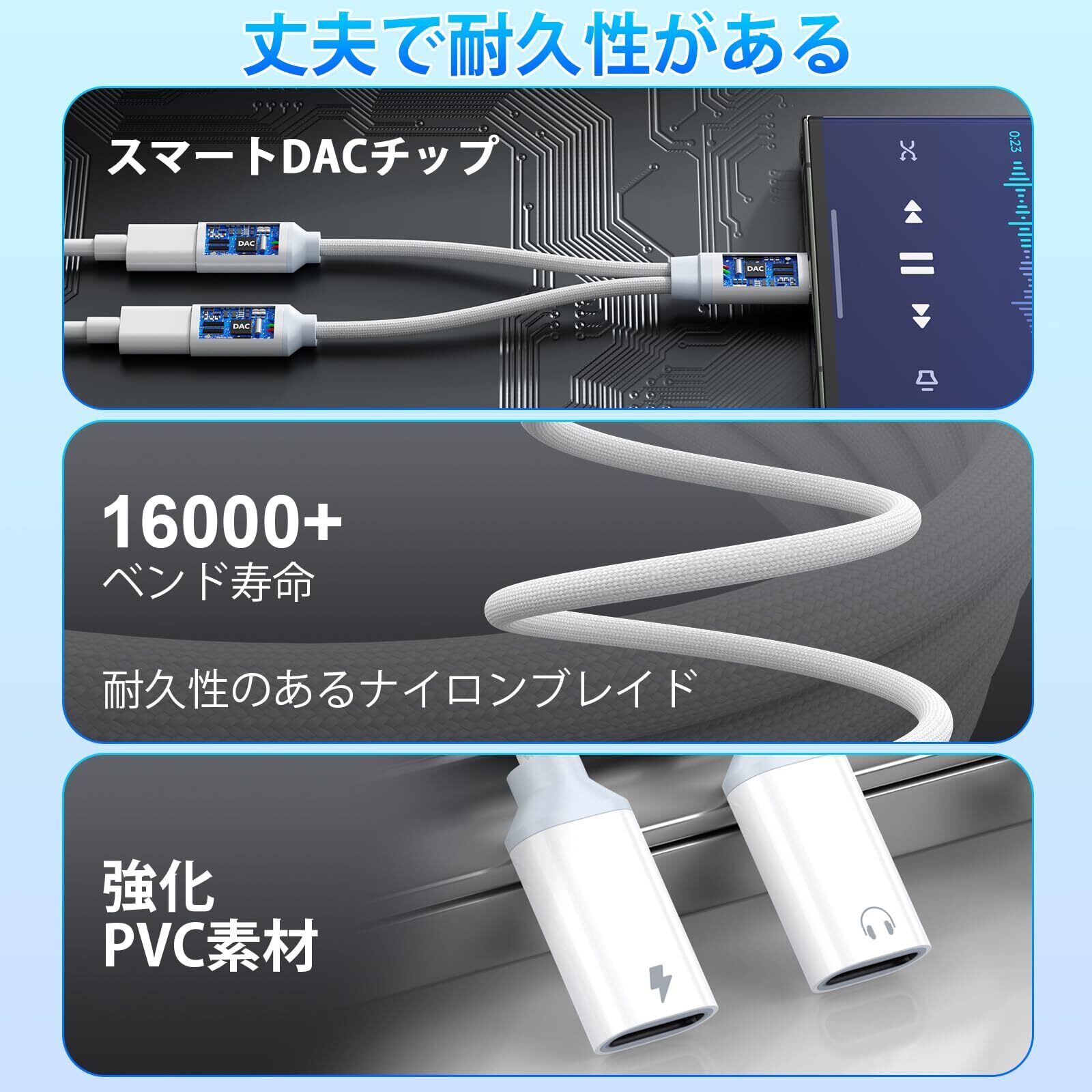【数量限定】【2025 ハイレゾ音質】タイプC イヤホン変換 アダプタ 2in1 iPhone15 イヤホン 変換 PD 60W急速充電 Type-C to デュアルUSB-C イヤホンジャックDAC搭載 24bit/96KHz対応 ナイロン編み 音量調節/通話/音楽対応 iPhone 16/15シリーズ/iPad Pro/Android/Type Cなど機器に適用ホワイト