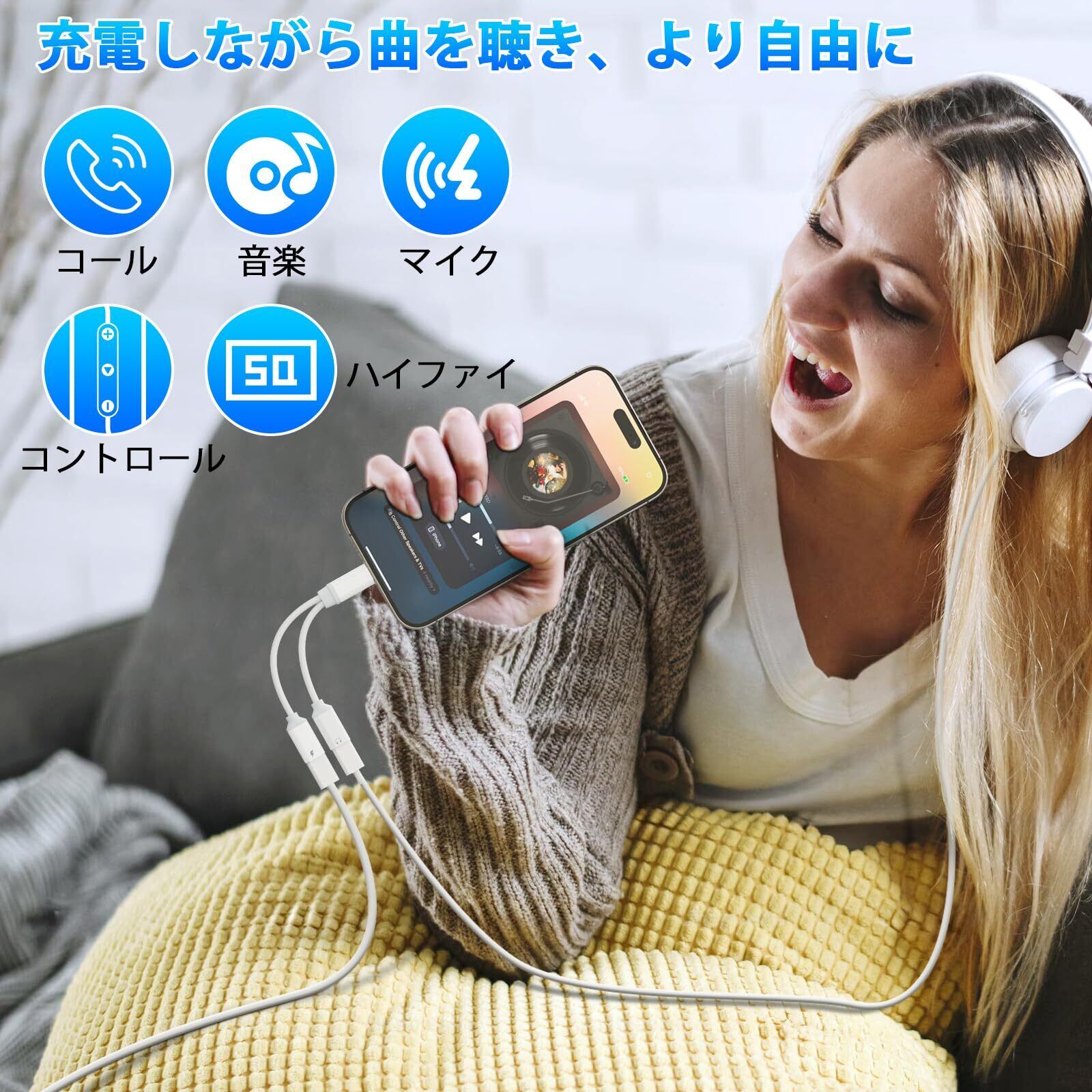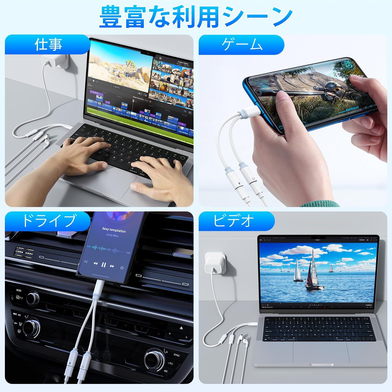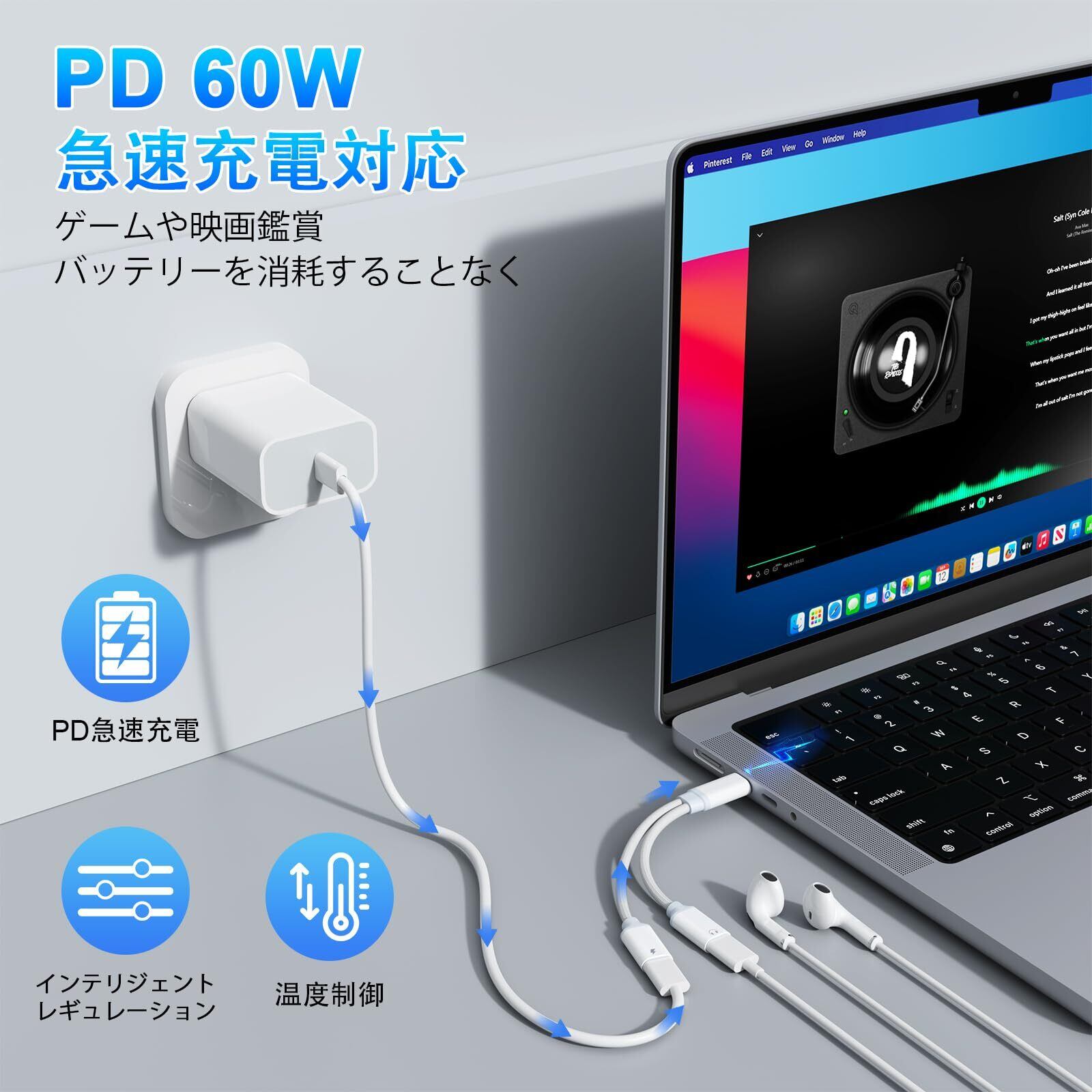 【数量限定】【2025 ハイレゾ音質】タイプC イヤホン変換 アダプタ 2in1 iPhone15 イヤホン 変換 PD 60W急速充電 Type-C to デュアルUSB-C イヤホンジャックDAC搭載 24bit/96KHz対応 ナイロン編み 音量調節/通話/音楽対応 iPhone 16/15シリーズ/iPad Pro/Android/Type Cなど機器に適用ホワイト