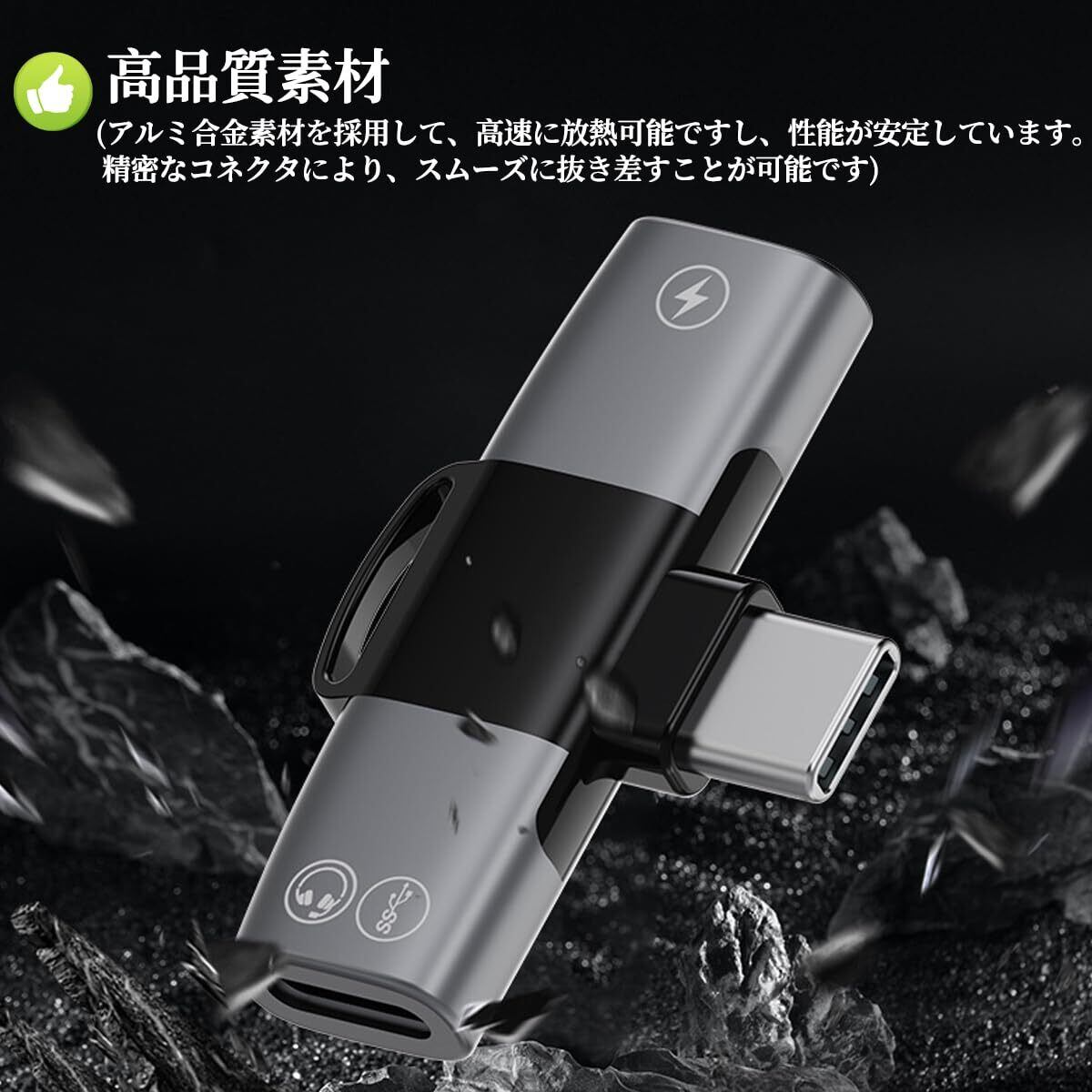 【高速で安全に充電】USB C イヤホン変換アダプターは過電流制限おり、充電電圧と電流の安定性を確保し、安全充電を実現します。最大100WのUSB Power Deliveryに対応しています。最大出力3A仕様で、効率が良く充電時間を短縮します。バッテリー切れで音楽の瞬間が台無しにならないようにしましょう。注:急速充電効果を得たい場合は、20W以上のPD充電器を使用する必要があります。